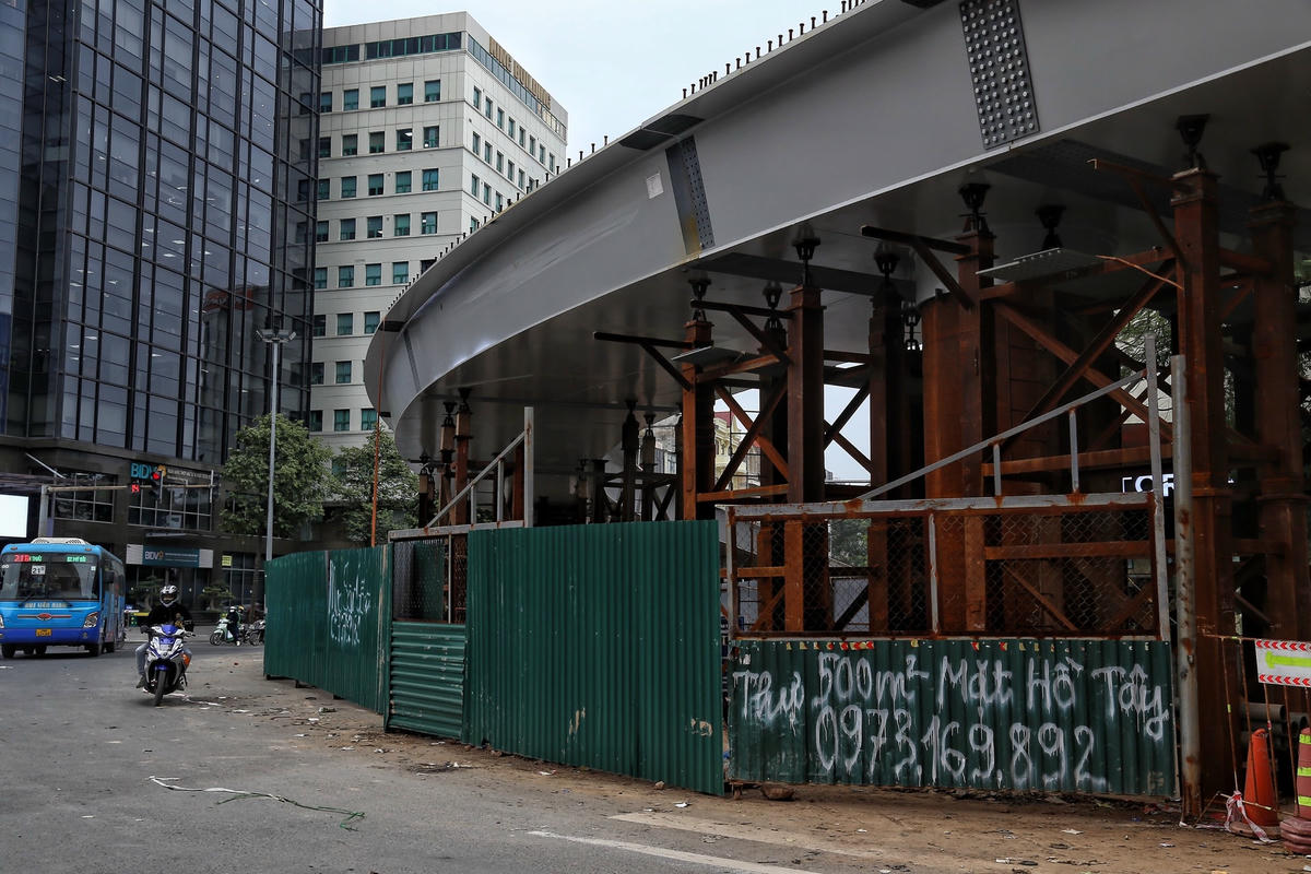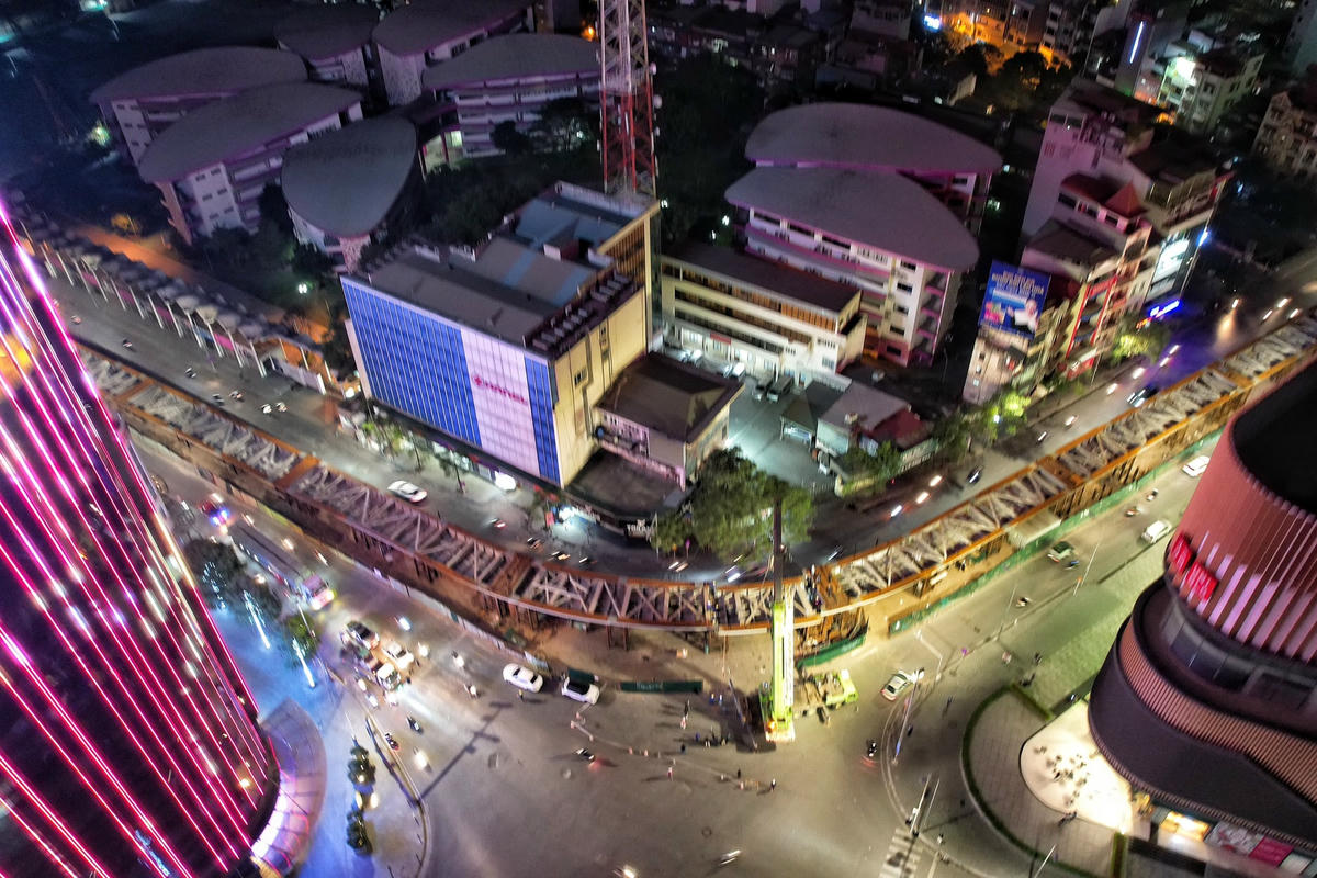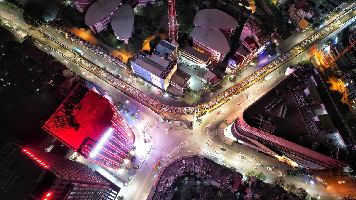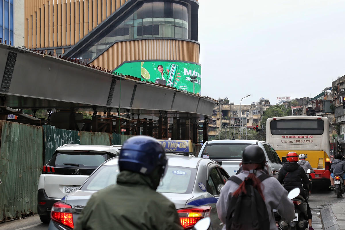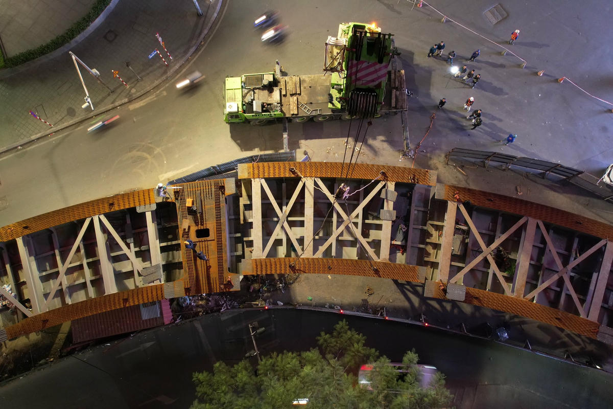 Đêm 14/2, dự án cầu vượt chữ C đã được hợp long nối phố Chùa Bộc và Phạm Ngọc Thạch dự kiến sẽ thông xe vào dịp 30/4.