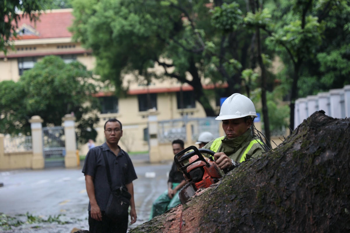 Sau khi nhận tin báo, Lực lượng Cảnh sát Phòng cháy chữa cháy và cứu nạn, cứu hộ Công an quận Hai Bà Trưng đã điều động 1 xe chữa cháy, 1 xe cứu nạn cứu hộ xuống hiện trường phối hợp với Công ty TNHH MTV Công viên cây xanh Hà Nội tiến hành cắt bỏ cây, dọn dẹp để "giải cứu" chiếc xe buýt. Tới khoảng 12h30 cùng ngày, hiện trường đã được dọn dẹp xong.