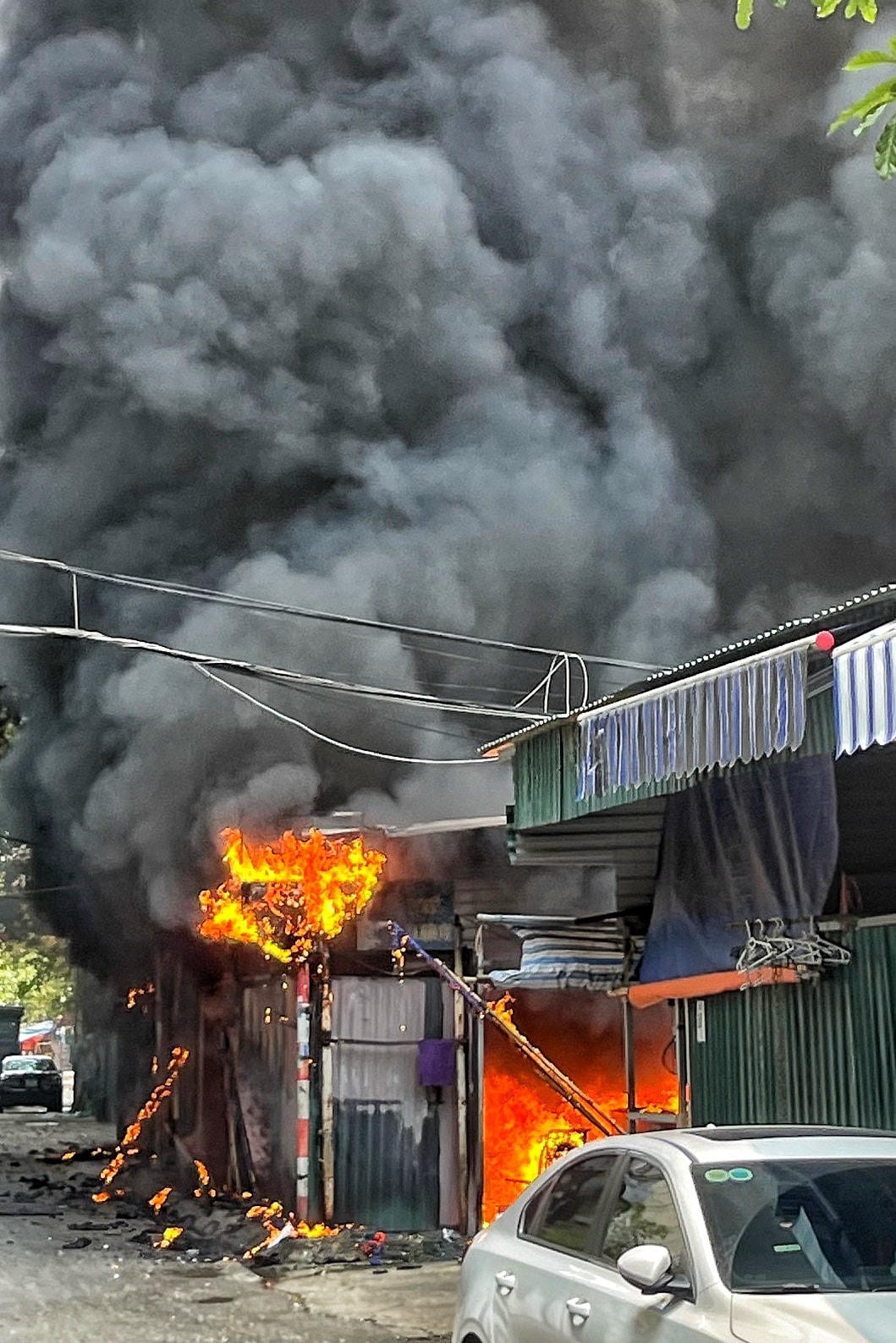 Khoảng 13h ngày 6/5, đám cháy bất ngờ bùng phát tại bãi trông giữ xe tại địa chỉ số 35, 37 Trần Quốc Hoàn. Chỉ trong ít phút đám cháy nhanh chóng lan rộng.