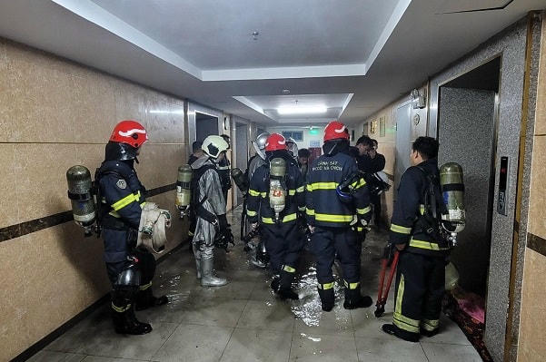 Cảnh sát chữa cháy phát hiện diện tích cháy khoảng 8m2 phòng ngủ, trong căn hộ của ông N.C.C ở tòa HH3C khu đô thị Linh Đàm phát ra nhiều khói độc nên đã hướng dẫn thoát nạn cho 120 người tại 3 tầng.
