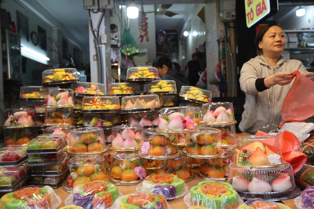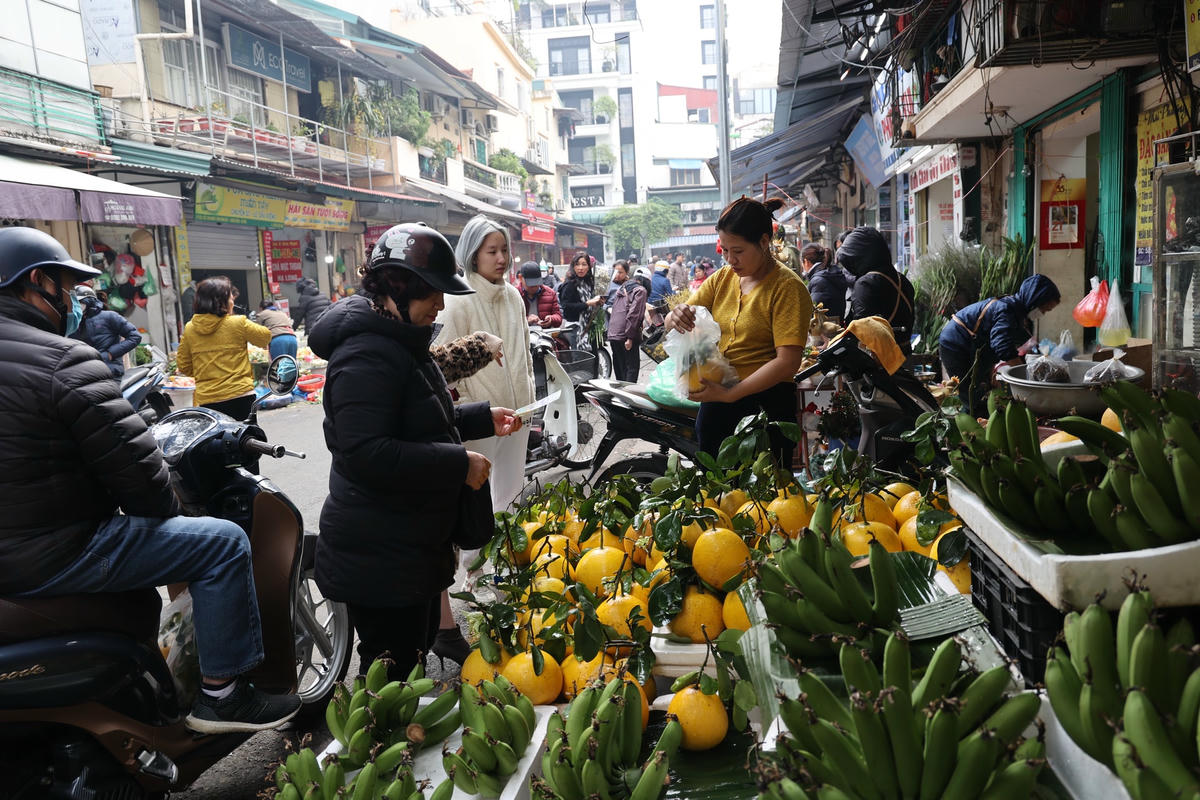 Mặc dù giá bán gấp 2, gấp 3 lần ngày thường, nhưng nhiều người vẫn chọn chợ Hàng Bè (Hoàn Kiếm, Hà Nội) để mua đồ trước thời khắc giao thừa Xuân Quý Mão 2023.
