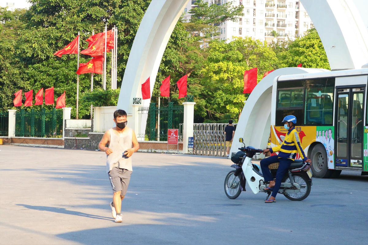 Hà Nội: Công viên đóng cửa, người dân đeo khẩu trang tập thể dục bên ngoài