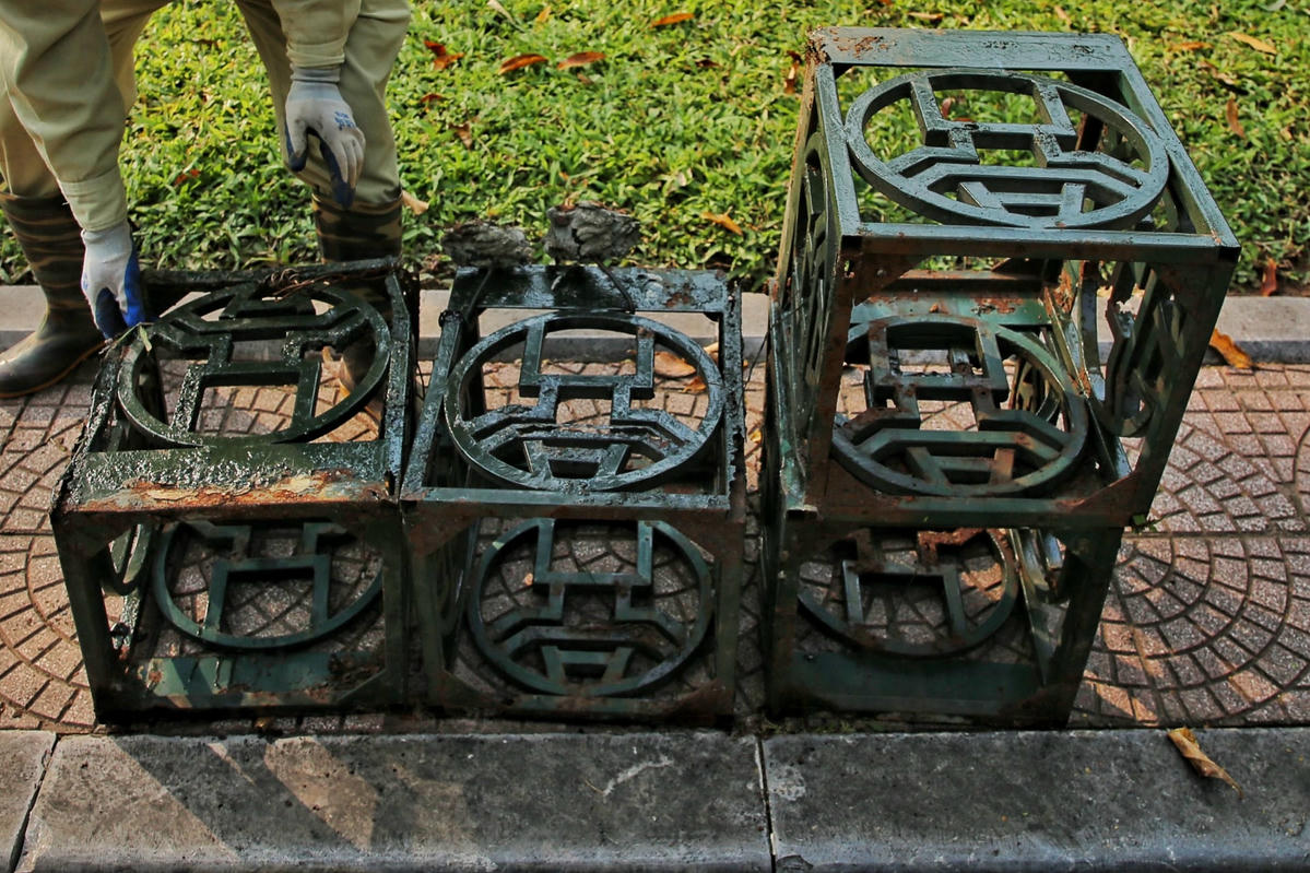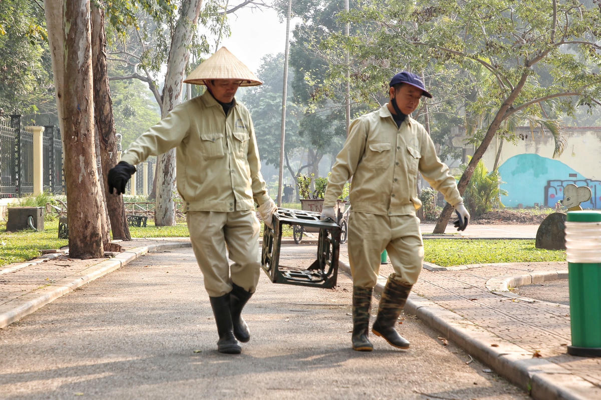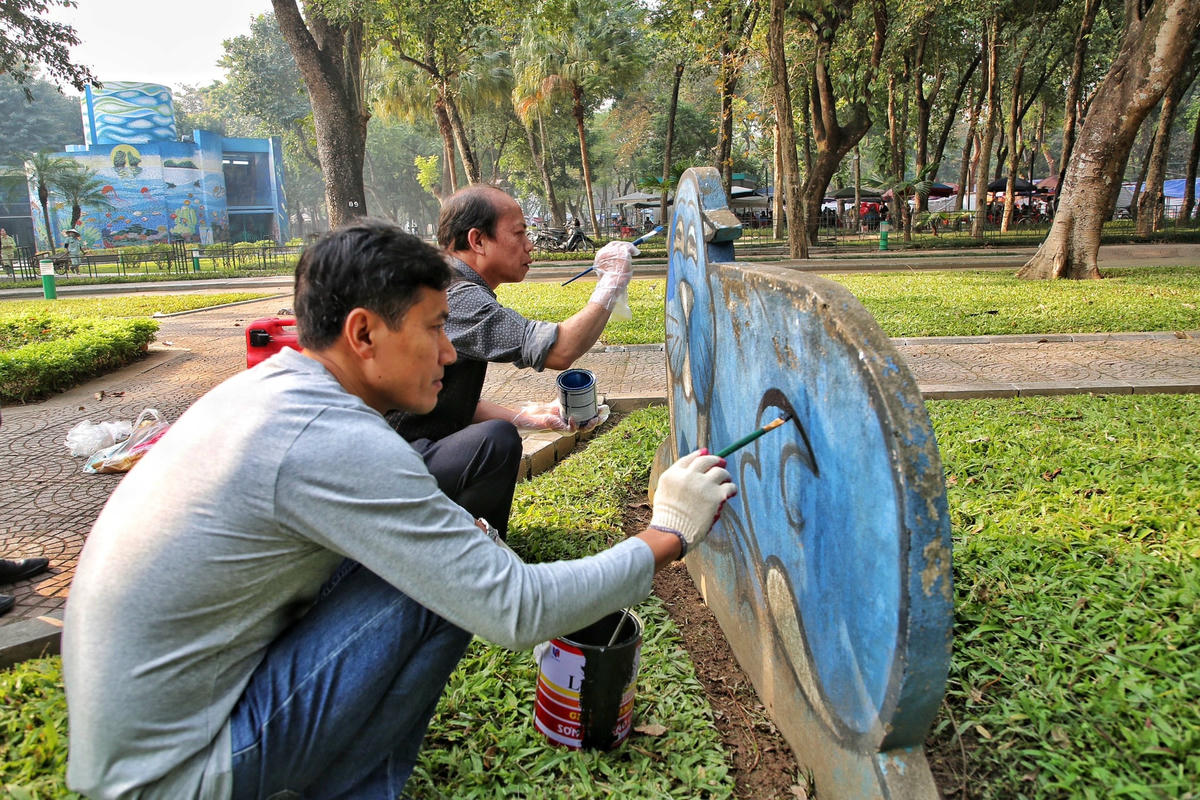 Sáng 22/12, hàng chục công nhân, máy móc đã được huy động về Công viên Thống nhất để tháo dỡ hàng rào dài khoảng 400 m tại mặt phố Trần Nhân Tông (Hai Bà Trưng).Theo ông Nguyễn Huy Cường, Phó Tổng Giám đốc Công ty TNHH MTV Công viên Thống Nhất, việc dỡ hàng rào được thực hiện theo chủ trương của UBND TP Hà Nội, nhằm tạo không gian mở để nhân dân dễ dàng tiếp cận với công viên, vườn hoa.“Theo kế hoạch, quá trình tháo dỡ rào công viên được thực hiện trong hơn 1 tháng, dự kiến đến ngày 28/2 sẽ hoàn thành”, ông Nguyễn Huy Cường cho biết.Công nhân vận chuyển hàng rào sắt đã được cắt về vị trí tập kết.Cũng trong sáng nay, các công nhân cũng đã chỉnh trang ô cỏ...Các tiểu cảnh cũng được sơn sửa lại để sẵn sàng đón người dân tham quan với không gian mới.