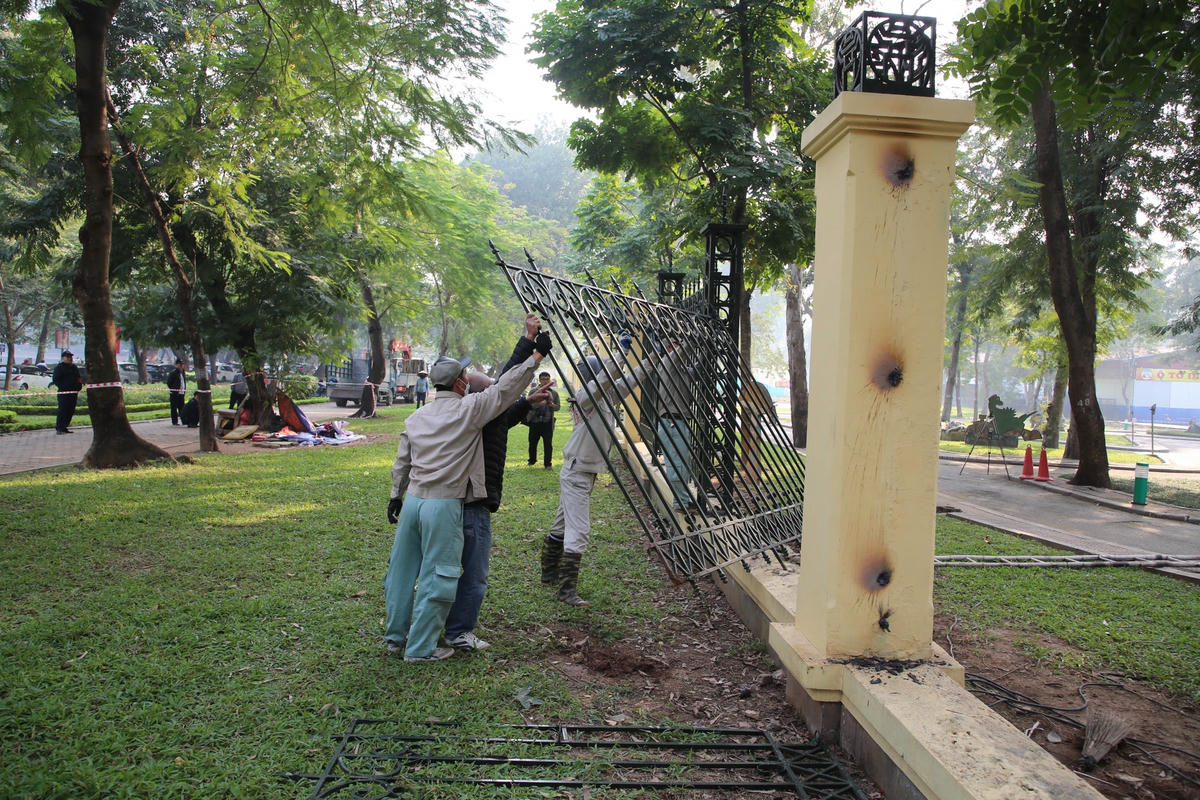 Sáng 22/12, hàng rào bên ngoài Công viên Thống Nhất bắt đầu được tháo dỡ, tạo không gian mở (phía đường Trần Nhân Tông) để kết nối với không gian đi bộ, liên kết công viên với hồ Thiền Quang.