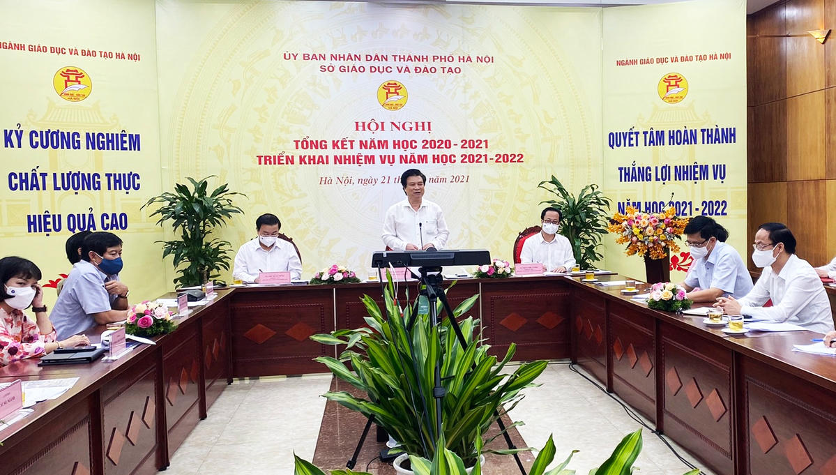 Ngày 21/8, Sở Giáo dục và Đào tạo (GDĐT) Hà Nội tổ chức hội nghị tổng kết năm học 2020-2021, triển khai nhiệm vụ năm học 2021-2022 theo hình thức trực tuyến tới hơn 200 điểm cầu của các phòng GDĐT, các nhà trường.