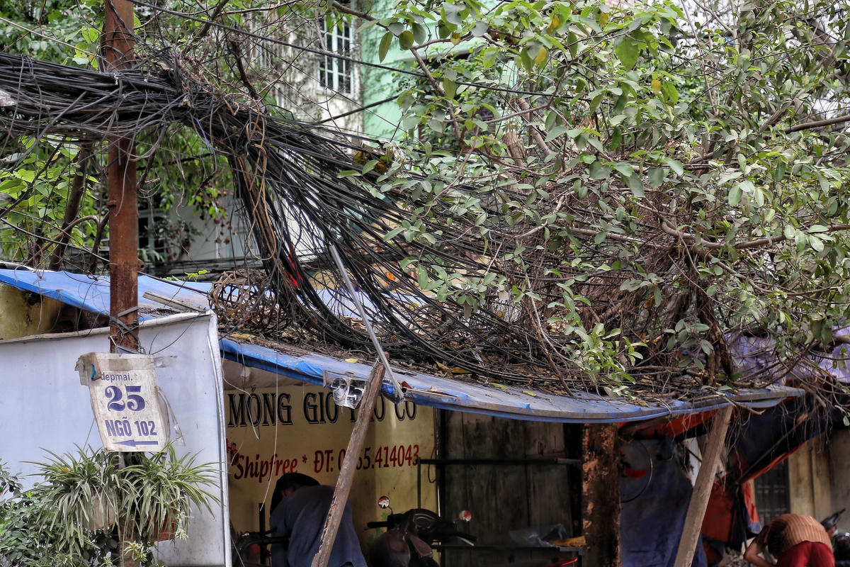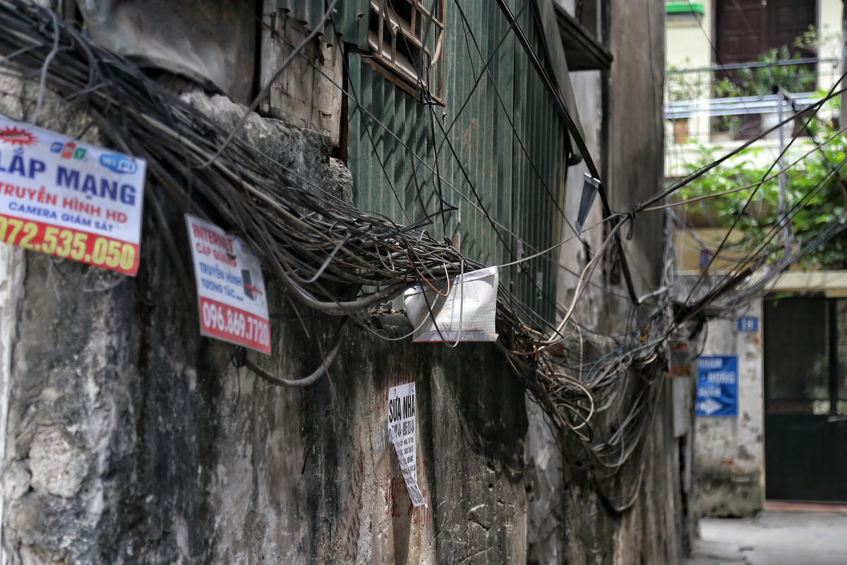 Hà Nội: Dây điện, cáp viễn thông như 'nhả tơ' tại nhiều tuyến phố