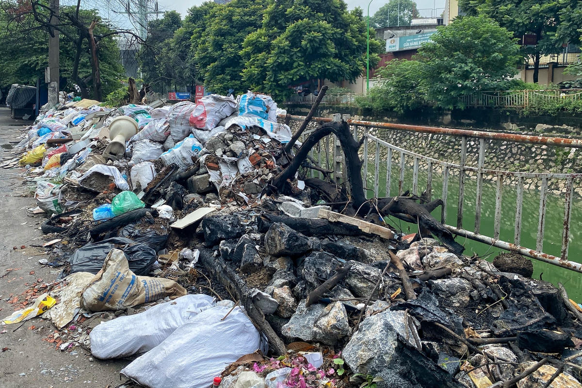 Theo ghi nhận của PV, sáng 25/9 tại ngõ 120 đường Trường Chinh, 3 chiếc xe tự chế chở đầy rác thải xây dựng ngang nhiên đổ xuống vỉa hè ngay sát đường ven bờ sông Lừ. Đáng nói, tình trạng, đổ trộm rác thải tại đây diễn ra thường xuyên khiến con ngõ này ngập ngụa trong rác thải và phế liệu.Chị N.T.Đ. trú tại ngõ 120 Trường Chinh (xin dấu tên) chia sẻ: “Tình trạng đổ trộm rác thải tại đây đã diễn ra từ lâu. Do vị trí bãi rác nằm ngay trước mặt nhà tôi đã rất nhiều lần tôi phải gọi xe để chở bớt rác thải, phế liệu đi để bớt mùi hôi thối”.Theo chị Đ., lâu dần việc đổ trộm rác thải ở đây càng thường xuyên hơn, khiến đống rác tại đây mỗi ngày một cao hơn nhưng không hề được xử lý.Lâu dần rác thải tràn xuống lòng đường gây cản trở giao thông.Chỉ 5 phút sau khi PV đến hiện trường ghi nhận đã bắt gặp ngay 3 chiếc xe tự chế chở đầy rác thải xây dựng ngang nhiên dừng đỗ chuẩn bị đổ trộm.Tuy nhiên, khi bắt gặp PV ,3 chiếc xe tự chế này ngay lập tức di chuyển đến một vị trí khác để tránh bị ghi hình.Song, phải chờ đến khi PV di chuyển đến một vị trí khác thì ngay lập tức 3 chiếc xe này lại ngang nhiên quay về đổ trộm rác thải.Đây là đống phế liệu sau khi đoàn xe tự chế ngang nhiên đổ xuống vỉa hè.Nhiều cây lớn tại đây đã bị đống rác thải xây dựng này "bóp nghẹt" biến thành những cây củi khô.Nhiều người dân sinh sống tại đây cho rằng, tình trạng này đã diễn ra từ lâu nhưng không hiểu vì lý do gì mà những trường hợp đổ trộm rác thải xây dựng ngay giữa ban ngày không hề bị xử lý. Vì vậy, đề nghị các cơ quan chức năng nhanh chóng vào cuộc để xử lý dứt điểm tình trạng trên?