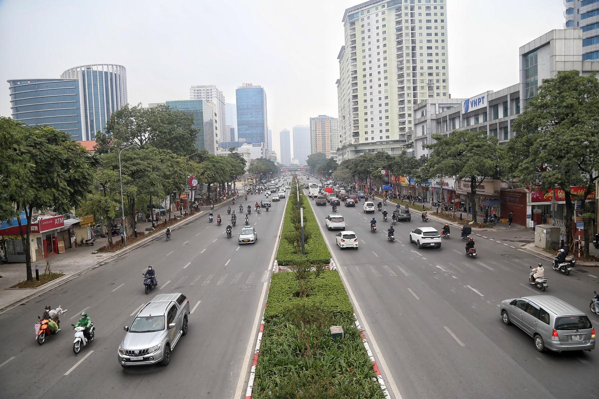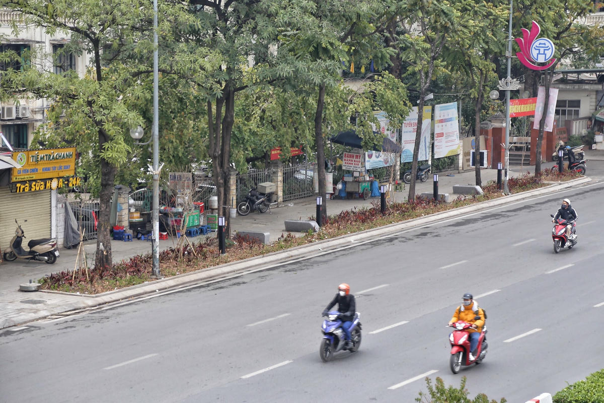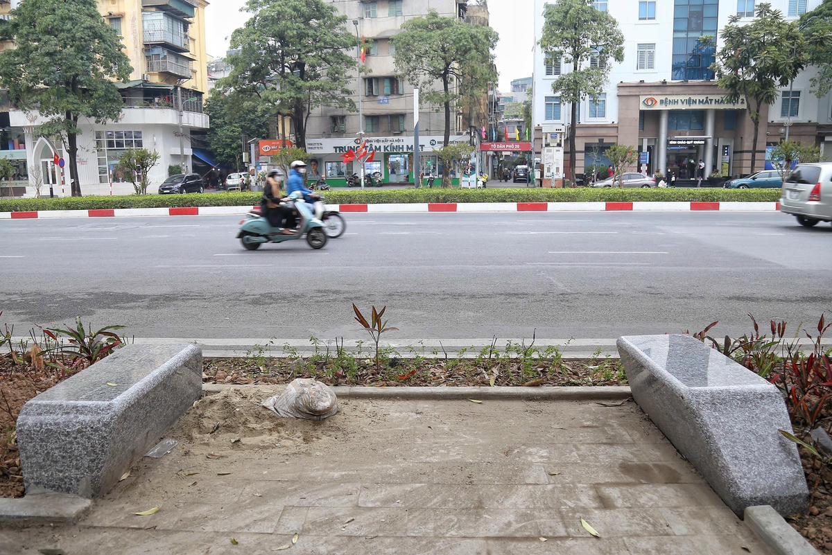 Hà Nội: Hàng ghế đá độc lạ dưới những gốc hoa sữa trên đường Nguyễn Chí Thanh
