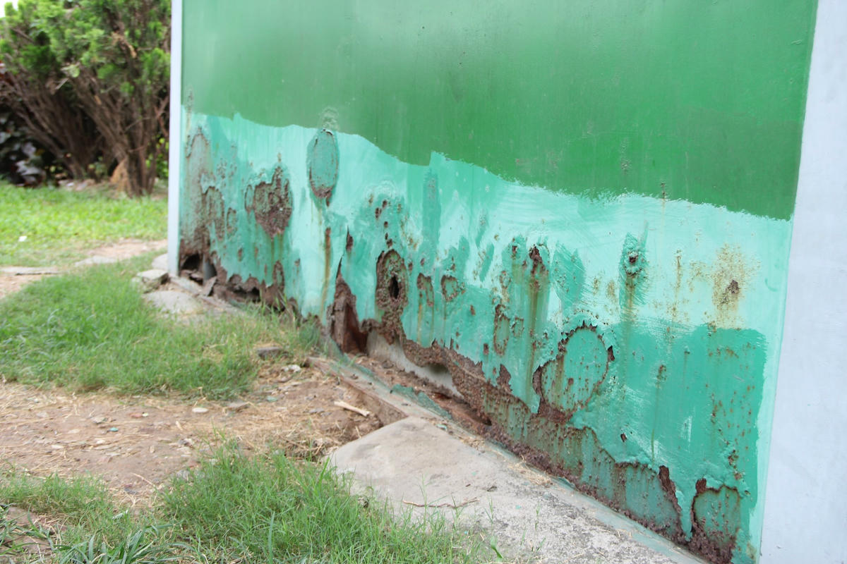 Các hạng mục xuống cấp, nhà vệ sinh cửa đóng then cài.
