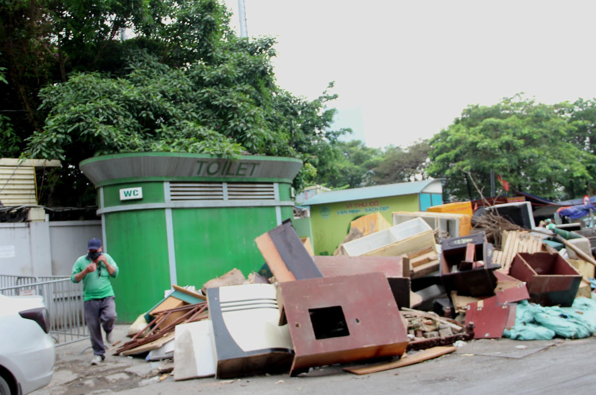 Bà Hiền - một người dân bán nước ở bến xe Mỹ Đình cho biết: "Do nhà vệ sinh không có nước nên người ta khóa cửa lại, người dân vãng lai phóng uế luôn bên ngoài nhà vệ sinh".