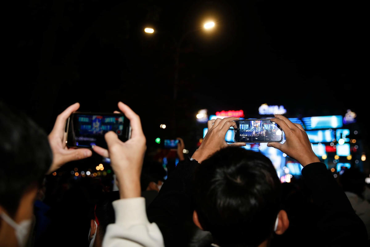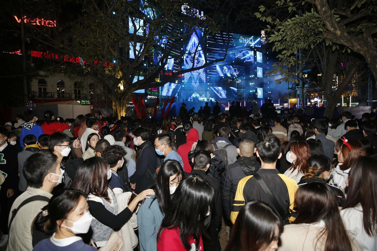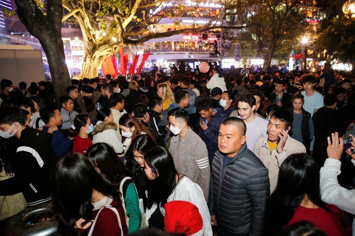 Đường phố quanh Hồ Gươm trở nên “tắc nghẽn” vào tối 24/12 vì hàng nghìn người đổ về đây xem chương trình ca nhạc đêm Noel.