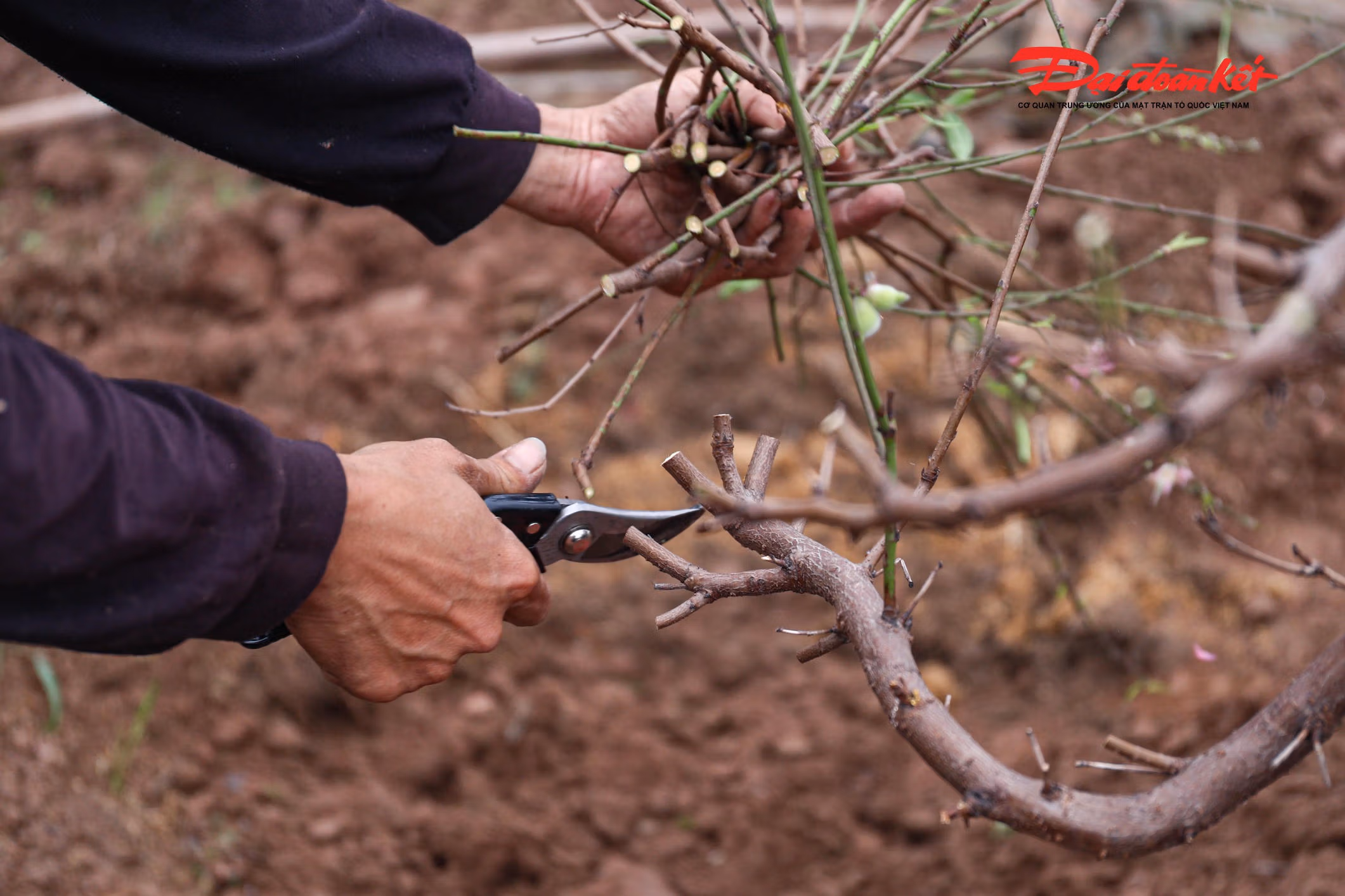 Sau Tết Bính Ngọ, khi thị trường hoa xuân khép lại, các chủ vườn đào Nhật Tân (phường Hồng Hà, Hà Nội) nhanh chóng thu gom gốc, cắt tỉa, bón phân và tái tạo thế cây. Công đoạn “hồi sức” sau Tết được xem là bước khởi đầu quan trọng, quyết định chất lượng và dáng thế đào cho mùa hoa năm tới.