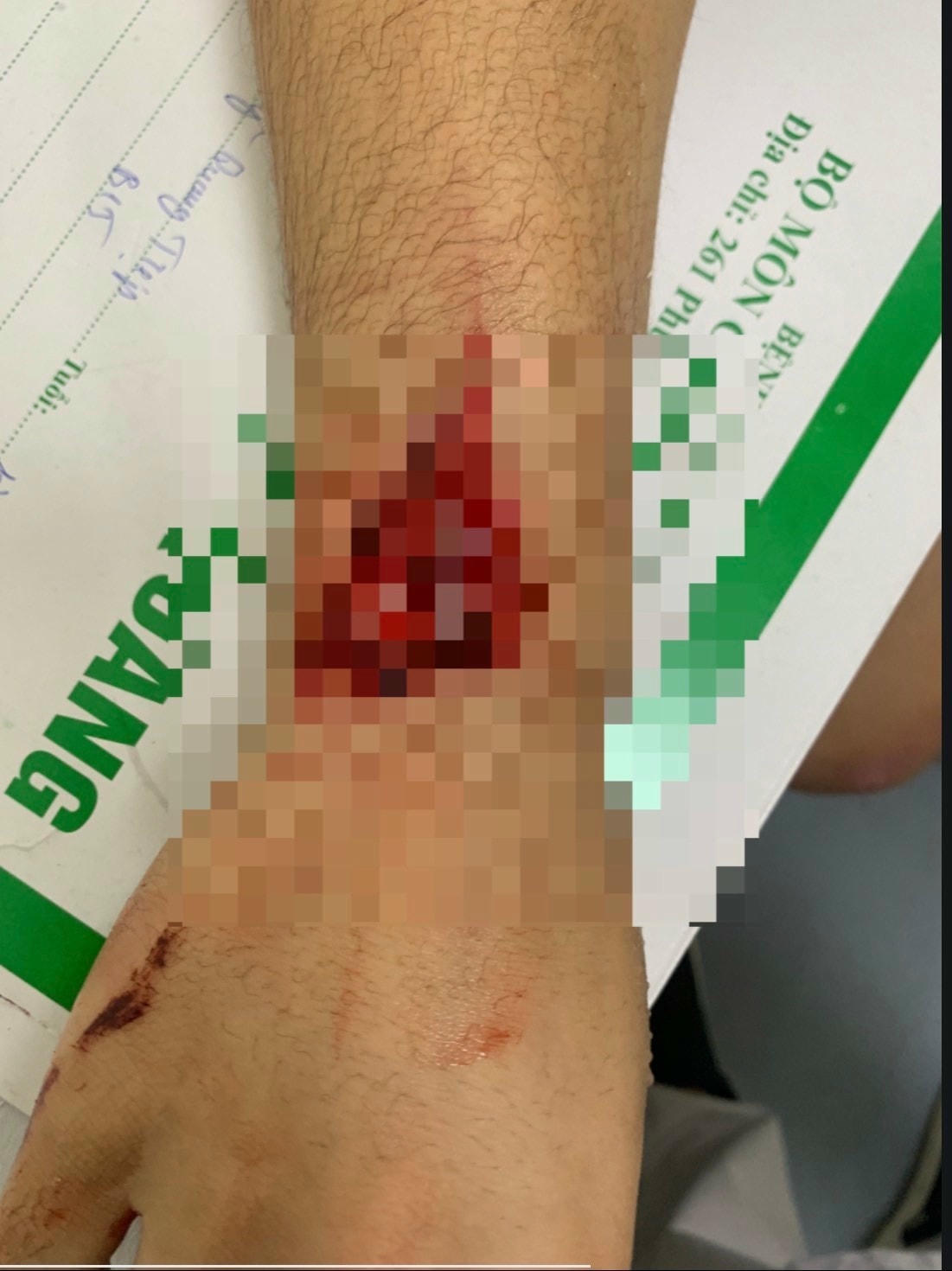 Anh N.T.N. cho biết, khi nhóm thanh niên lao vào hành hung anh, có một người trong nhóm này đã chỉ đạo đàn em về lấy đồ “dao quắm” ra để chém anh N.T.N.. Hậu quả anh N.T.N. bị chém vào cổ tay phải, vết thương sâu mất nhiều máu, được đưa đi cấp cứu tại Bệnh viện Quân y 103.