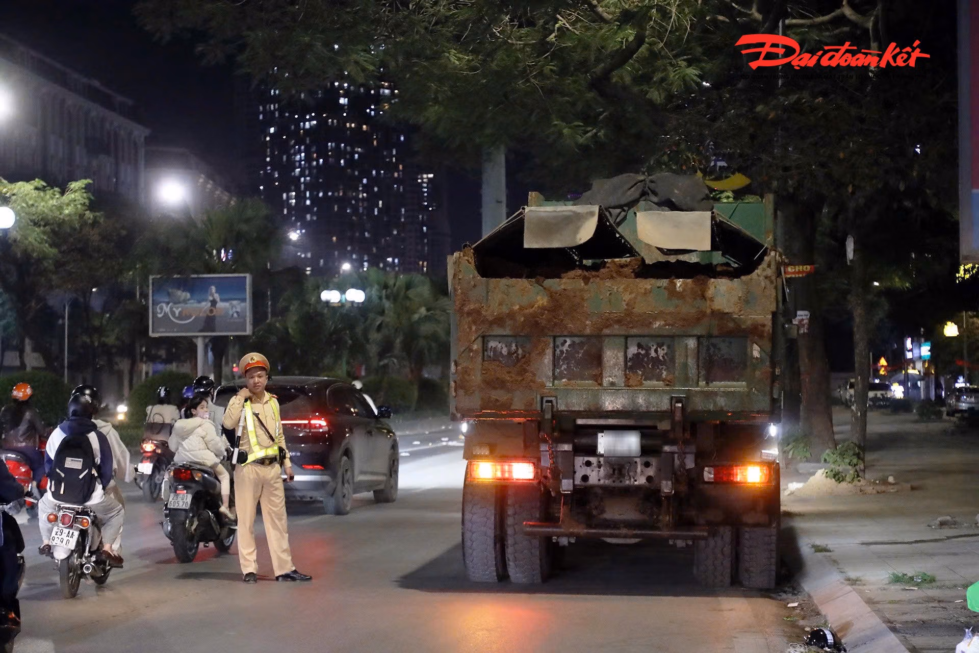 Khoảng 20h cùng ngày, tổ công tác dừng kiểm tra xe tải BKS 29H-308.XX do tài xế Lữ T.A. (SN 1994, trú tại Thanh Hóa) điều khiển. Qua kiểm tra, lực lượng chức năng phát hiện phần nắp sau thùng xe bám nhiều bùn đất, có nguy cơ rơi vãi trong quá trình di chuyển. Tài xế đã bị lập biên bản xử phạt 3 triệu đồng về hành vi điều khiển phương tiện làm rơi vãi chất thải, bùn đất hoặc vật liệu xây dựng ra đường.