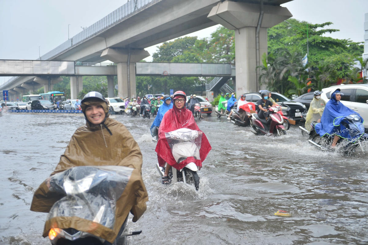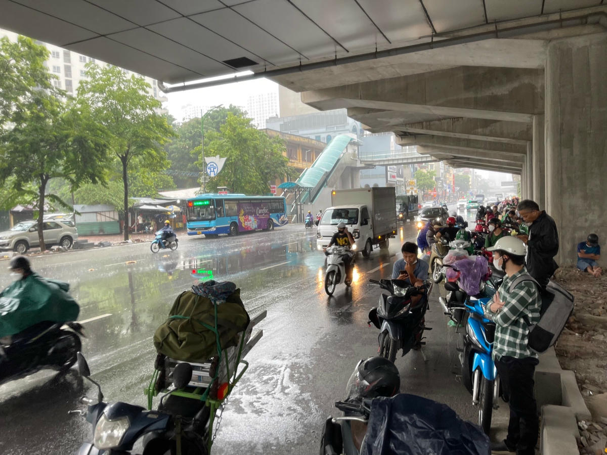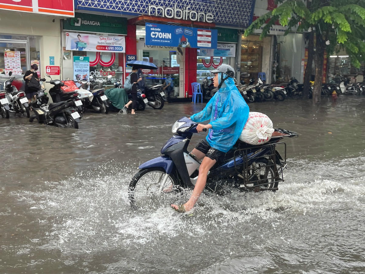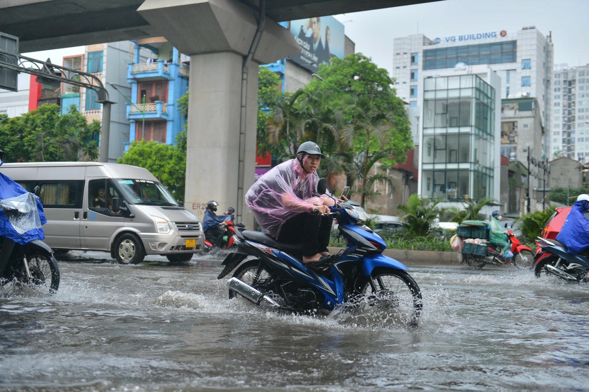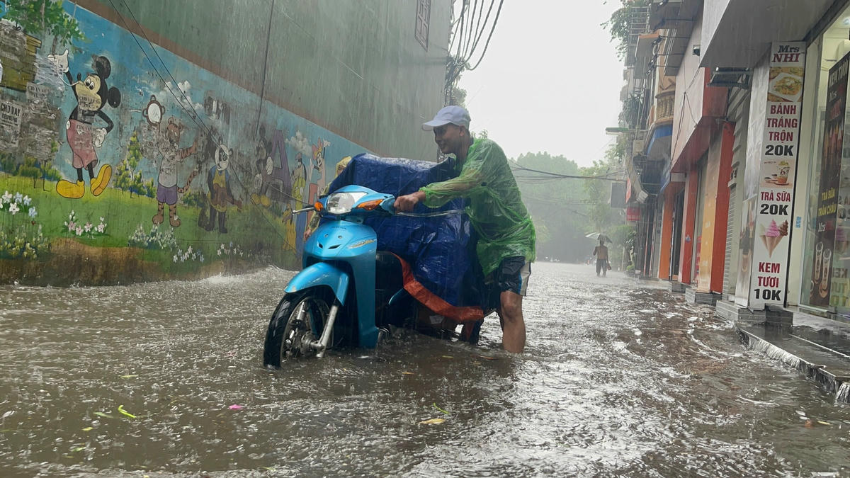 Hà Nội: Mưa lớn, đường ngập, nhiều người phải dắt xe
