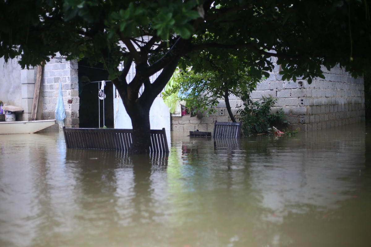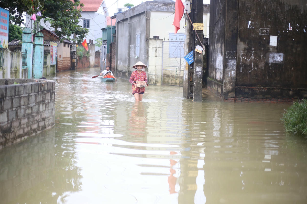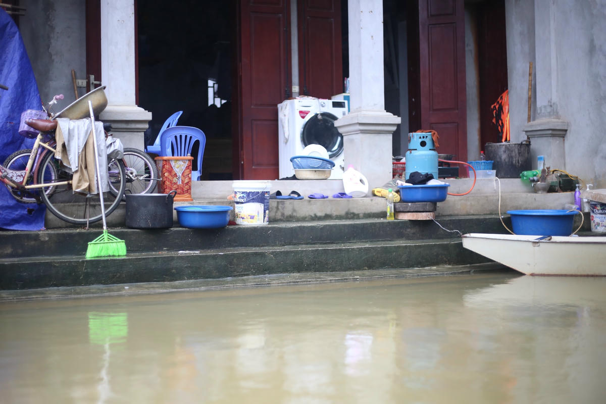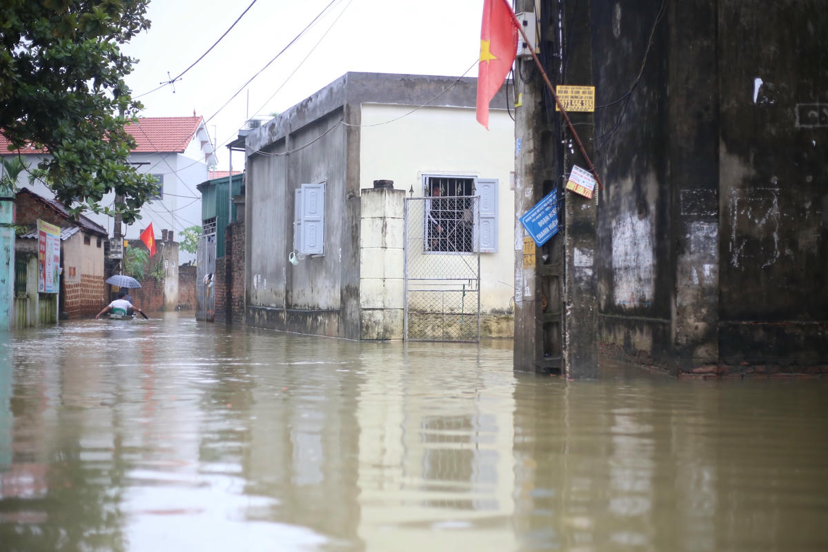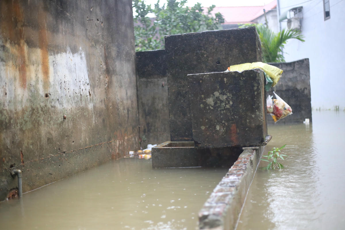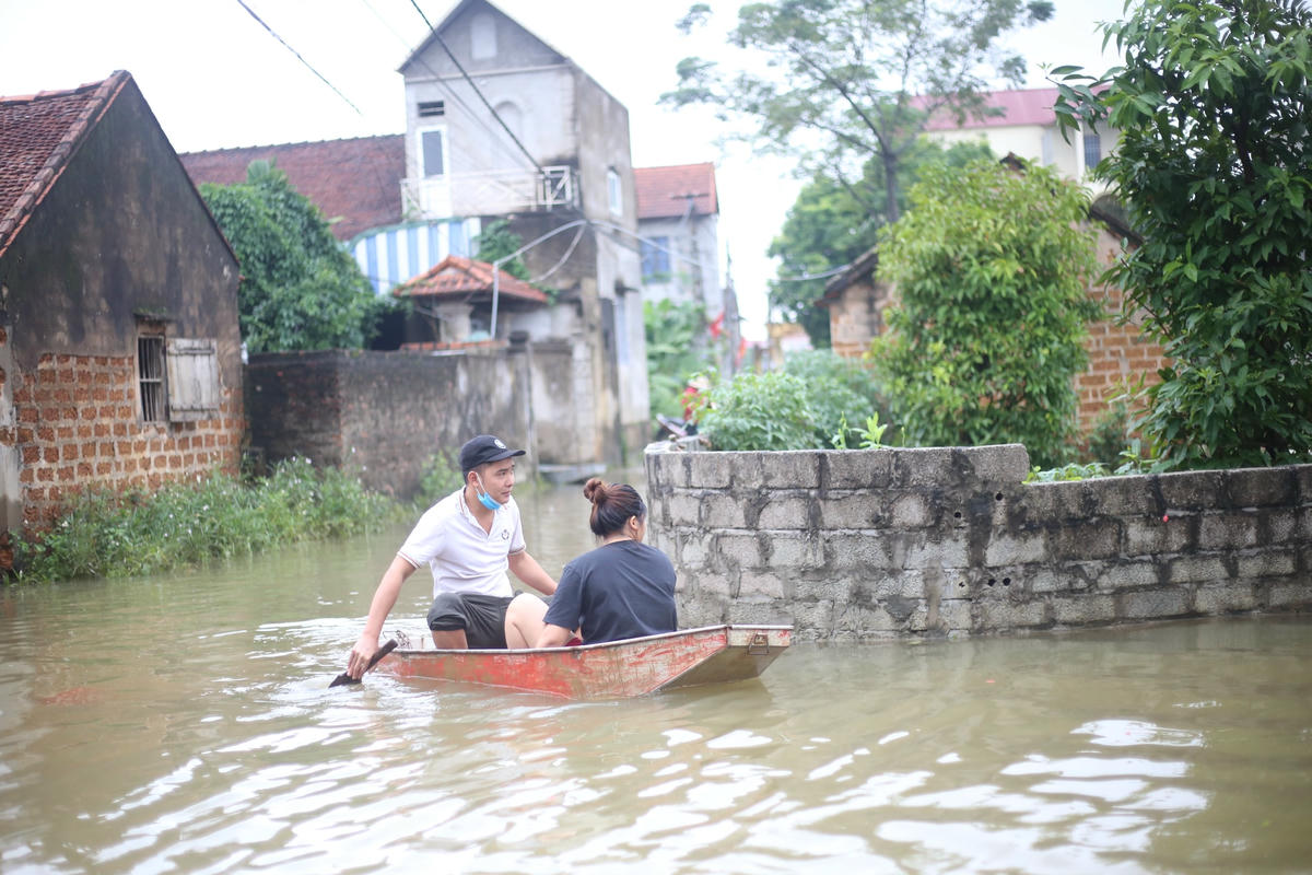 Sau nhiều ngày mưa to, nước sông Bùi dâng cao người dân thôn Đồng Dâu (xã Tốt Động, huyện Chương Mỹ, Hà Nội) bị chìm trong “biển” nước.