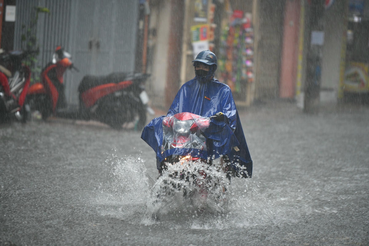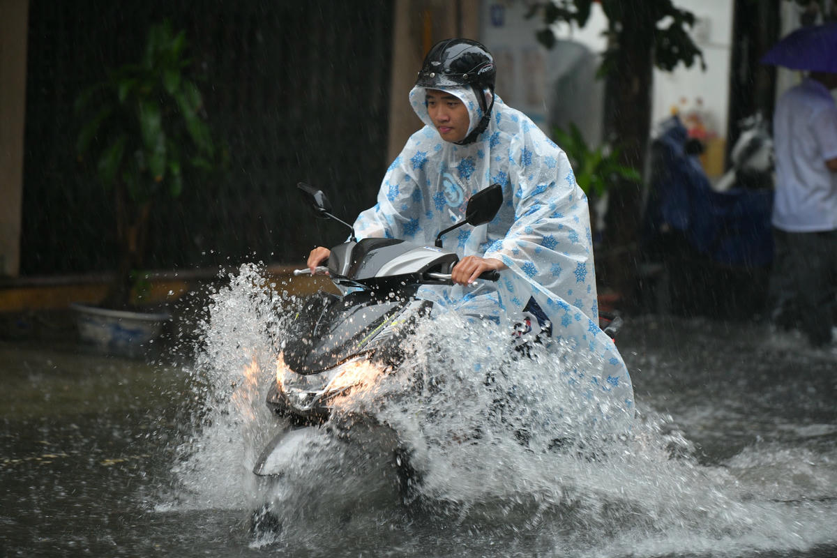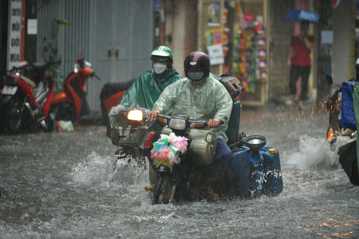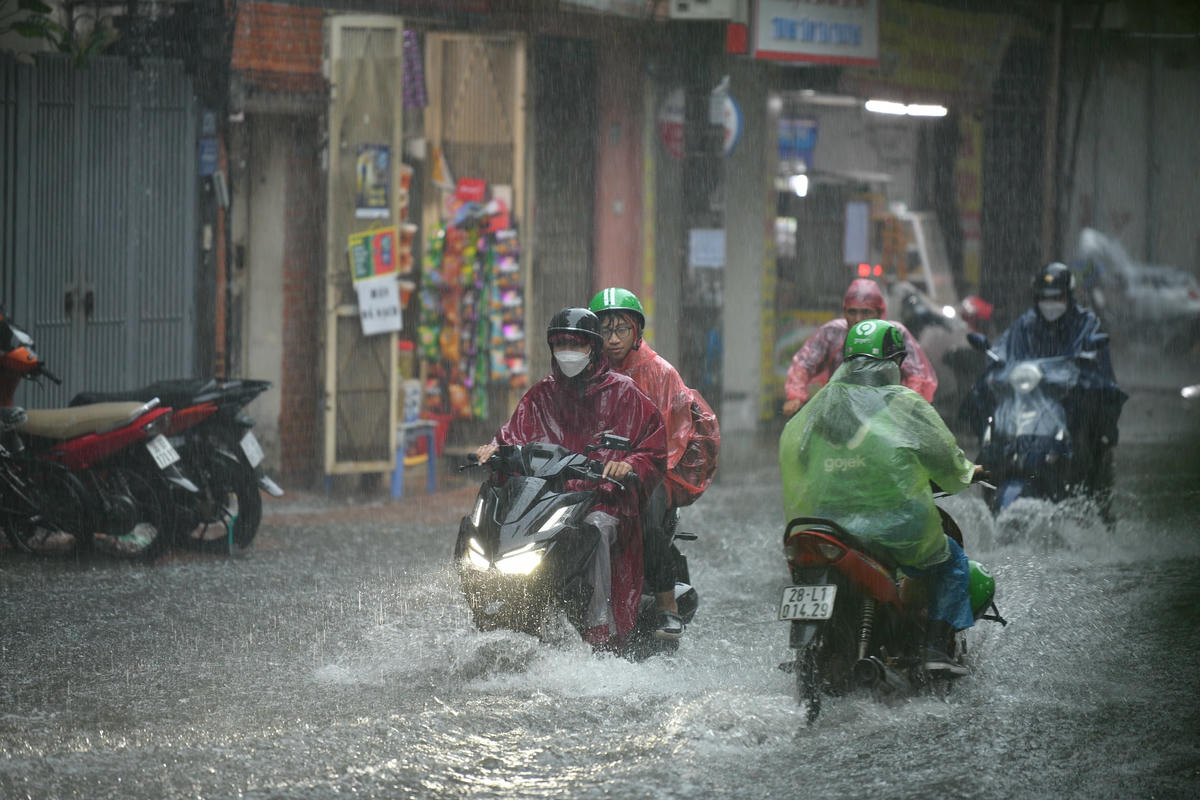 Theo ghi nhận của PV Báo Đại Đoàn Kết Online, cơn mưa lớn kéo dài gần 3 tiếng đồng hồ vào trưa nay (11/8) khiến một số đường phố ở Hà Nội ngập nặng. Nhiều khu vực thoát nước chậm khiến người dân đi lại hết sức khó khăn.Chỉ trong 1 giờ đồng hồ đầu tiên, lượng mưa đo được tại Yên Sở (Hoàng Mai) đã lên đến trên 186 mm, tại Tây Mỗ (Nam Từ Liêm) 84,5 mm; Thanh Trì 82,4 mm... Cơn mưa trắng trời, như trút nước, diễn ra trên diện rộng đã gây quá tải hệ thống thoát nước của thành phố.Đến khoảng 12h45, trên địa bàn nội đô đã xuất hiện nhiều điểm úng ngập cục bộ, như: Phố Nguyễn Chính, Hoàng Mai; Thụy Khuê (đoạn dốc La Pho), Đội Cấn, Bùi Xương Trạch, Vương Thừa Vũ, Lê Trọng Tấn, Phạm Ngọc Thạch, Phan Bội Châu - Lý Thường Kiệt...Công ty TNHH MTV Thoát nước Hà Nội cho biết, trước dự báo về khả năng xảy ra mưa, công ty đã chủ động hạ mực nước trên hệ thống. Tại thời điểm xảy ra mưa, công ty đã cho mở cửa phai của các hồ điều hòa và vận hành hợp lý các trạm bơm đầu mối: Đồng Bông, Yên Sở, Cổ Nhuế...Các đơn vị thoát nước đã ứng trực, giải quyết thoát nước ngoài hiện trường, tua vớt rác tại các miệng thu trên toàn địa bàn quản lý, nhằm dẫn nước nhanh nhất về nguồn tiêu, giảm thời gian và mức độ úng ngập...Theo thông báo, khu vực nội thành Hà Nội và các vùng lân cận vẫn tiếp tục có mưa vừa đến mưa to, lượng mưa phổ biến trong khoảng từ 20-40 mm, có nơi trên 60 mm.Đợt mưa này có khả năng sẽ gây ngập úng cho nhiều tuyến phố nội thành với độ sâu phổ biến từ 15-30cm. Đáng chú ý một số tuyến phố có khả năng ngập sâu hơn với độ sâu từ 30-40cm.Nước ngập ngang bánh xe máy khiến người dân đi lại khó khăn...nhiều người phải dắt bộ vì xe chết máy.Các xe máy di chuyển khó khăn.