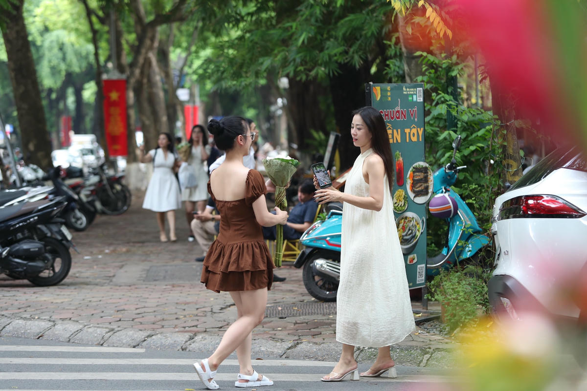 Phố Phan Đình Phùng (quận Ba Đình, Hà Nội) được biết đến là một trong những con đường rợp bóng mát cây xanh đẹp, lãng mạn nhất khu vực trung tâm Thủ đô.Cứ mỗi độ mùa thu về, nhiều tia nắng sớm chiếu qua kẽ lá tạo nên bối cảnh lý tưởng cho những bức ảnh mùa Thu Hà Nội.Bởi vậy, mà ngay đầu Thu, nhiều chị em đã chuẩn bị váy áo đẹp để đến chụp ảnh cùng với còn đường được coi là lãng mạn nhất Thủ đô.Chị Hà Linh phố Thuỵ Khuê, Tây Hồ chia sẻ, cứ mỗi độ vào Thu con đường này bỗng trở lên đẹp đến lạ lùng. Bởi những tia nắng chiếu qua hàng cây tạo ra những khung hình vô cùng đẹp."Do nhà cũng khá ở gần với Phố Phan Đình Phùng nên năm nào tôi cũng đến đây để chụp một bộ ảnh về mùa Thu. Dù năm nào cũng chụp với mùa Thu tại nơi đây. Nhưng mỗi khi đến đây tôi lại cảm thấy choáng ngợp, khi được đắm chìm trong sự mát mẻ đẹp đẽ.Ở Hà Nội có lẽ mùa Thu là mùa đẹp nhất trong năm, và đây cũng là thời điểm mỗi ngày, đường Phan Đình Phùng thu hút rất đông người dân Thủ đô tới chụp ảnh.Các loại hoa là phụ kiện không thể thiếu khi chụp ảnh tại nơi đây. Vì vậy, mặt hàng này bán rất đắt hàng tại đường Phan Đình Phùng.Hình ảnh những thiếu nữ Hà thành xúng xính trong tà áo dài là hình ảnh thường thấy trên con phố đẹp nhất Thủ đô.