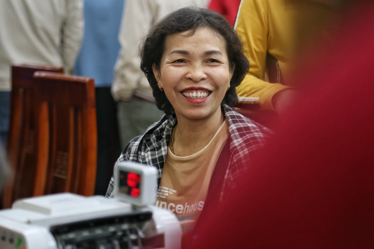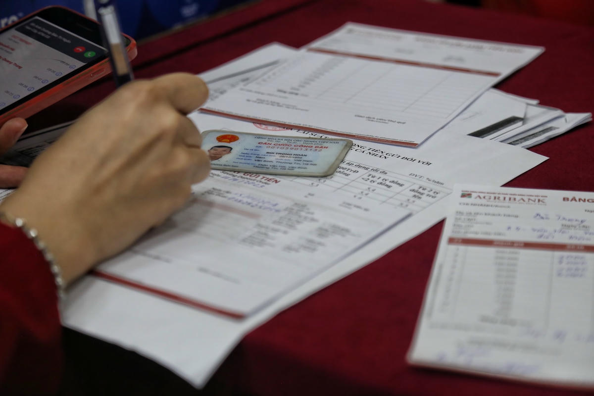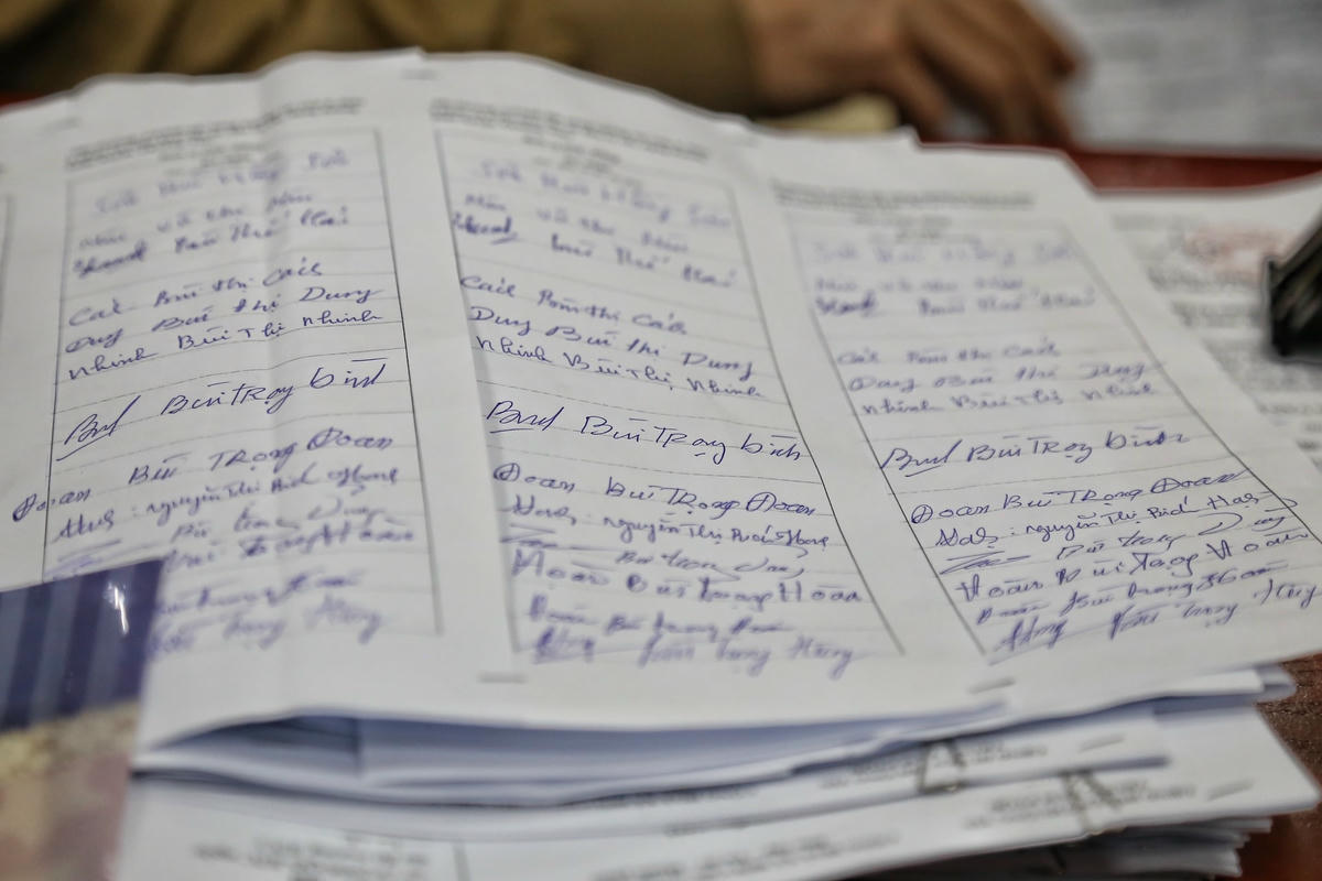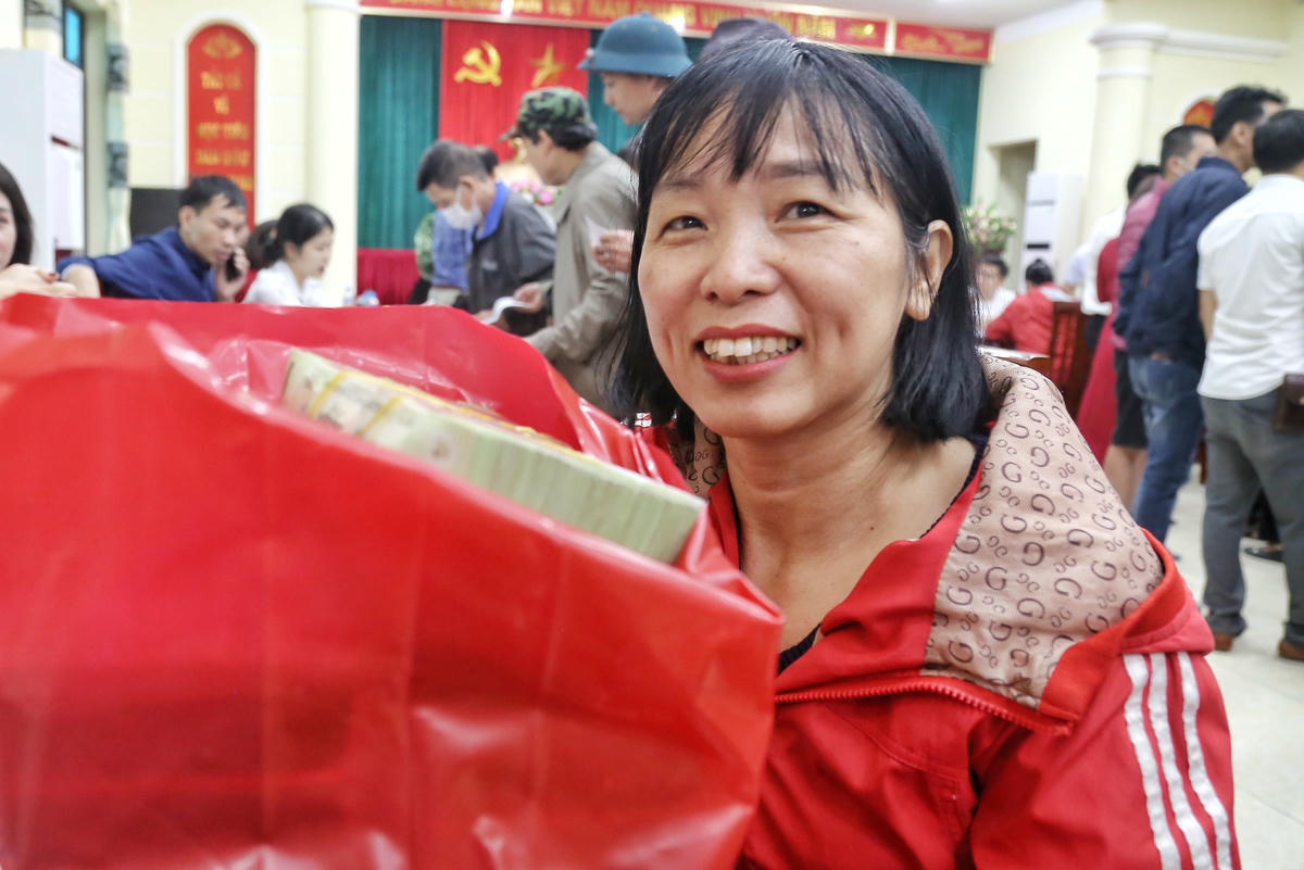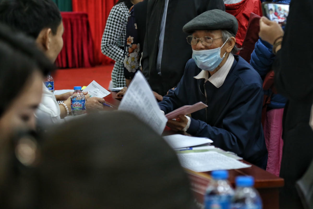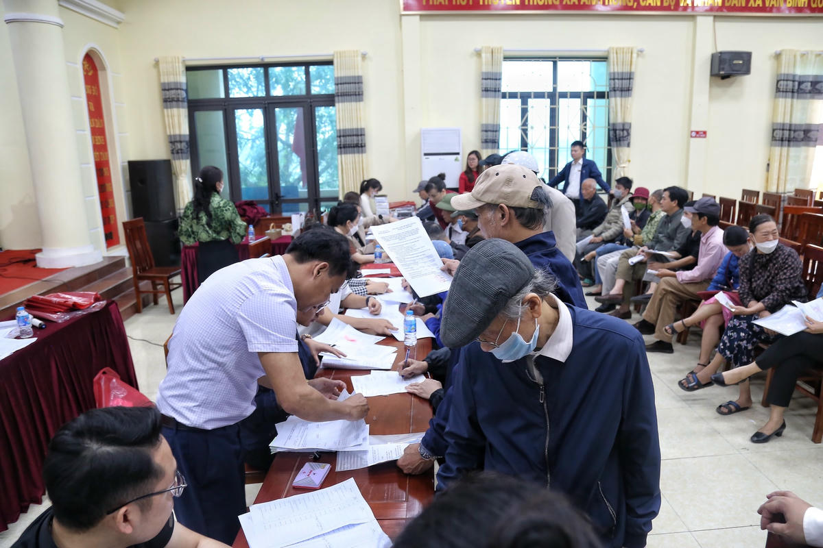 Người dân làm thủ tục nhận tiền đền bù.Người dân chờ để làm thủ tục nhận tiền bồi thường, hỗ trợ giải phóng mặt bằng.Người dân đồng thuận nhận tiền đền bù.
