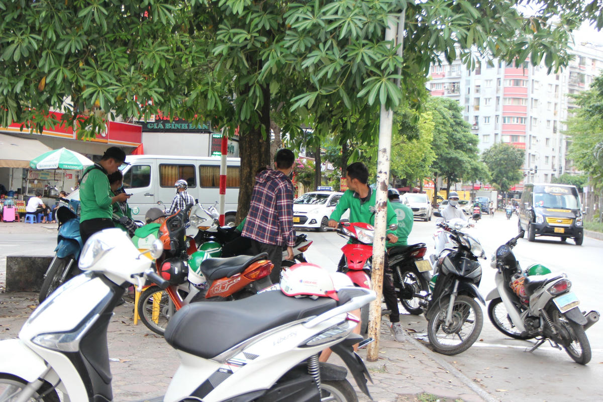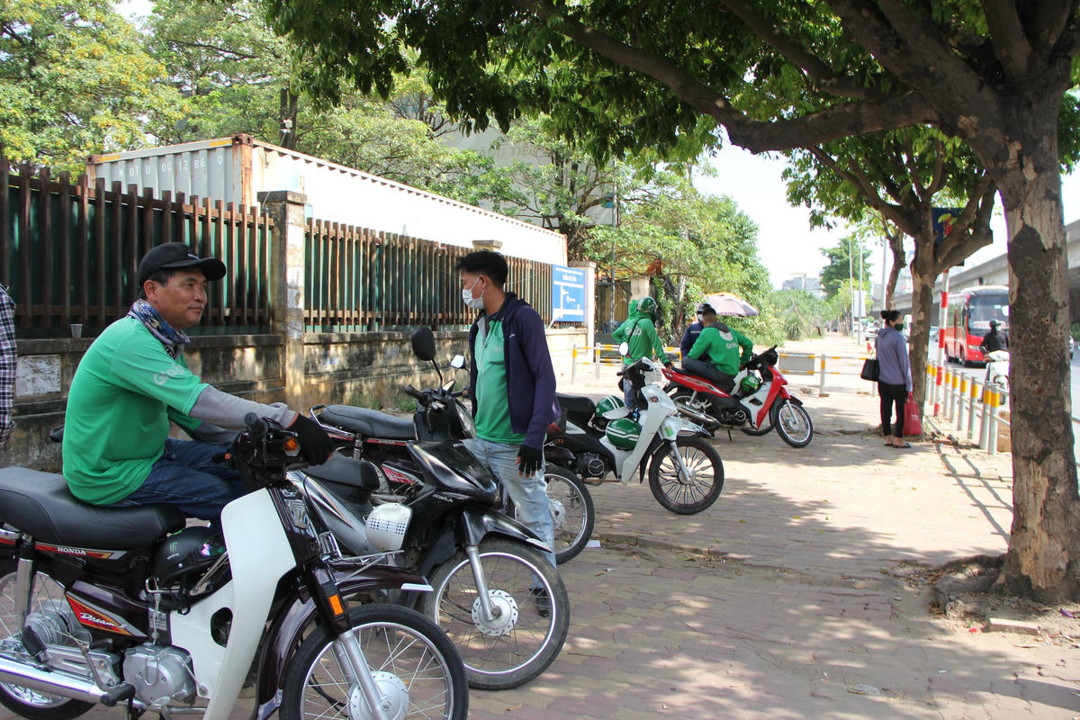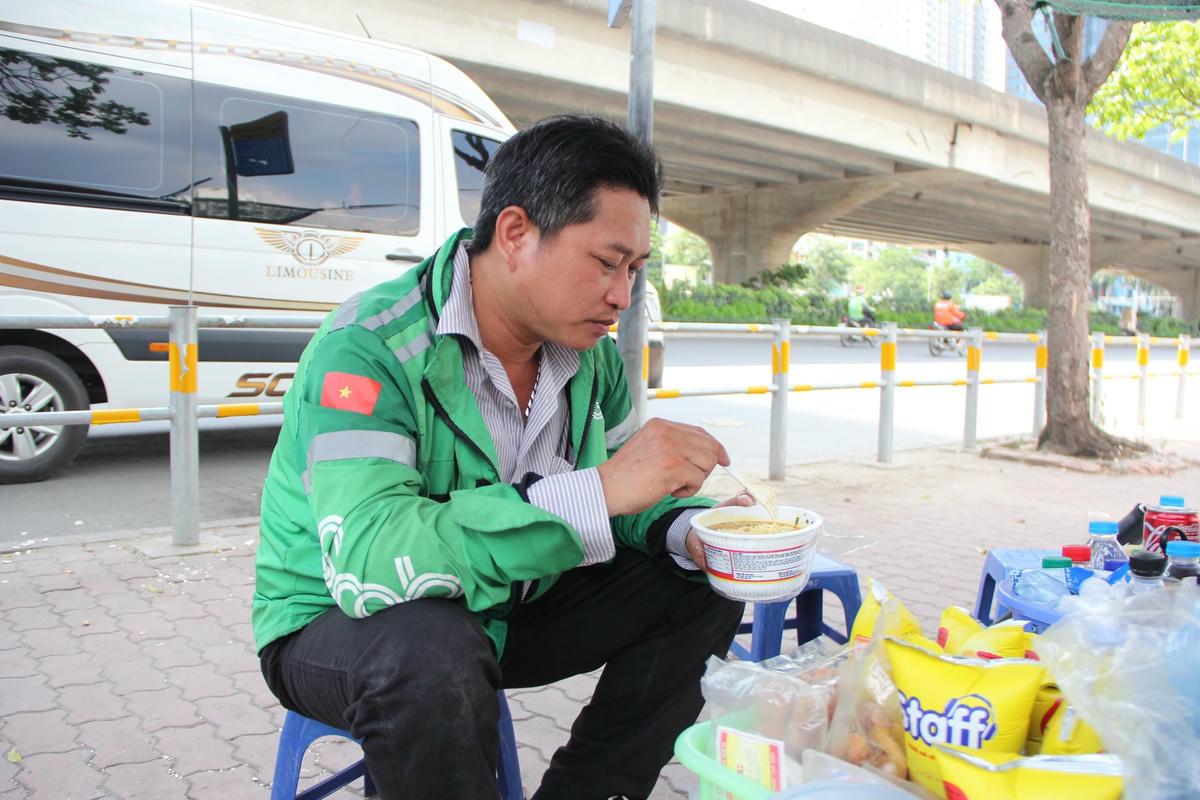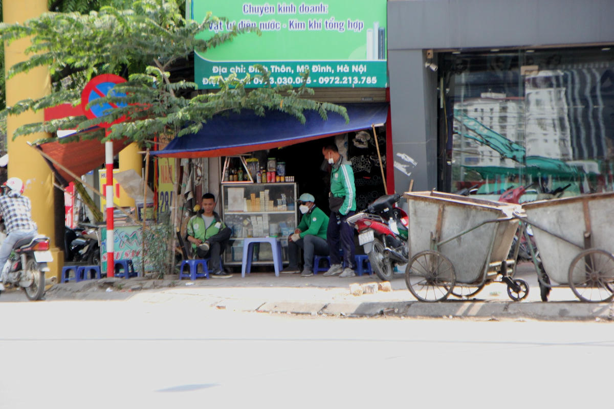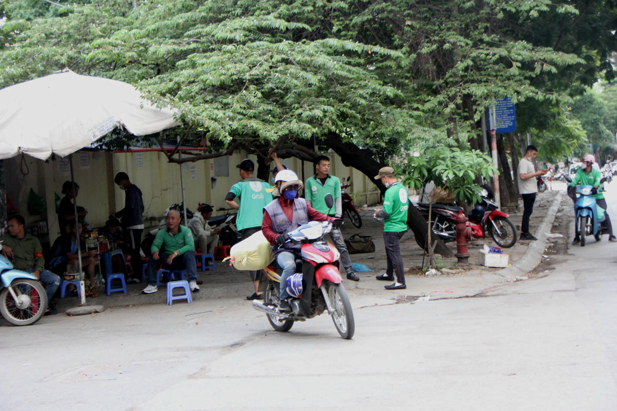 Theo ghi nhận của PV, dưới cái nắng gay gắt giữa trưa hè nhiều tài xế xe ôm công nghệ, lái xe ba gác… phải vạ vật ở những quán nước, gầm cầu, bóng cây để nghỉ ngơi tránh nắng.Để tránh cái nắng gay gắt 40 độ giữa trưa hè ở Thủ đô Hà Nội nhiều lái xe ba gác đành phải nghỉ trưa trên phương tiện "câu cơm" của mình ở gầm cầu vành đai 3.Còn những trường hợp khác kiếm bóng râm nghỉ ngơi hoặc ngồi vạ vật giữa lòng đường, vỉa hè. Đối với số đông tài xế xe ôm công nghệ thì kiếm những quán nước ngồi để nghỉ ngơi, uống nước giải khát giữa trưa là một phương án hữu hiệu nhất.Còn không thì chọn cách nghỉ ngơi dưới bóng cây gần bến xe, cổng làng, trạm xe buýt để tiện đón khách.Những lúc nắng nóng, oi ả mà có chiếc quạt mini cầm tay cũng phần nào xua bớt đi cái nóng nực.Anh Phan Văn H., quê ở Thanh Hóa cho biết: "Ngày trước chạy xe ôm công nghệ lúc xăng rẻ thì mỗi ngày trừ chi phí ra vẫn để dư được 200 - 300 nghìn đồng. Nhưng bây giờ thì khó kiếm được như thế, từ sáng đến giờ chạy 2 cuốc xe kiếm được 100 nghìn đồng thì đổ xăng mất 70 nghìn đồng. Còn 30 nghìn đồng thì không đủ tiền ăn mì tôm và uống nước giữa thời tiết nắng như thế này".
