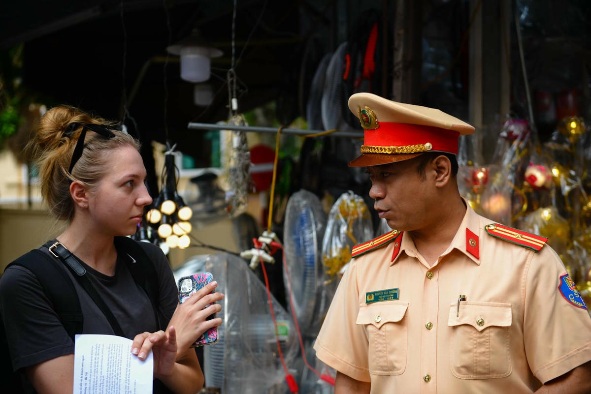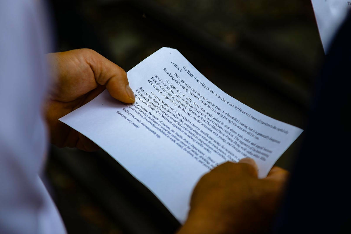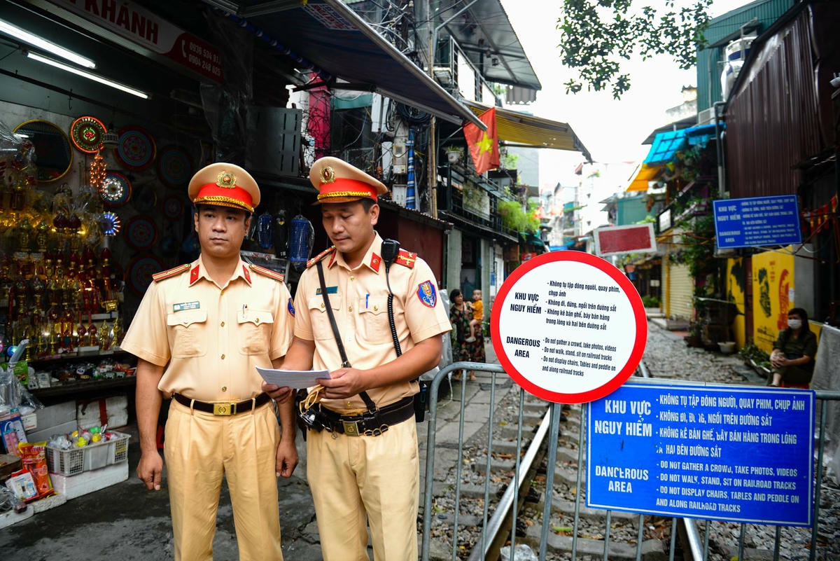 Trong sáng nay, 24/9, Đội Cảnh sát giao thông đường sắt cùng Công an thành phố Hà Nội đã tổ chức phát tời rơi song ngữ Anh - Việt với mục tiêu nhắc nhở, tuyên truyền cho người dân, du khách nước ngoài thực hiện nghiêm các quy định không tập trung đông người tại khu vực trên.