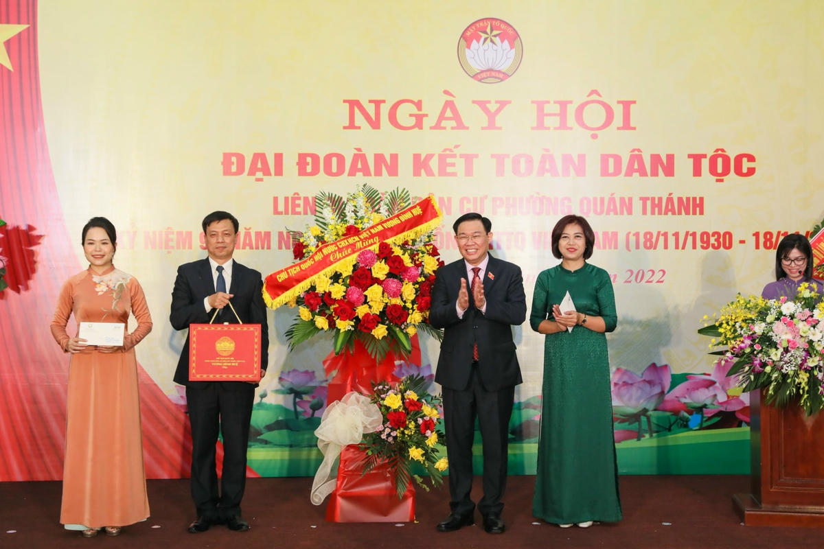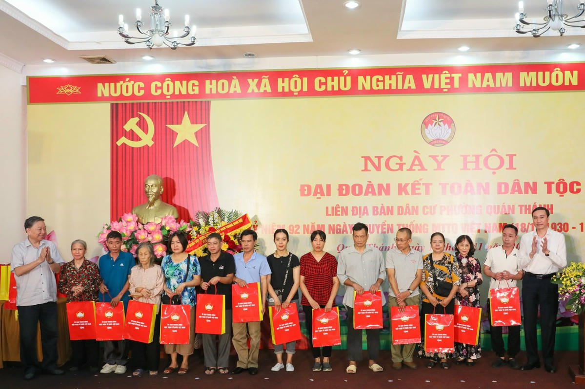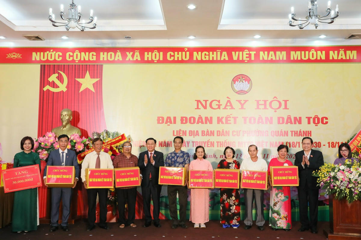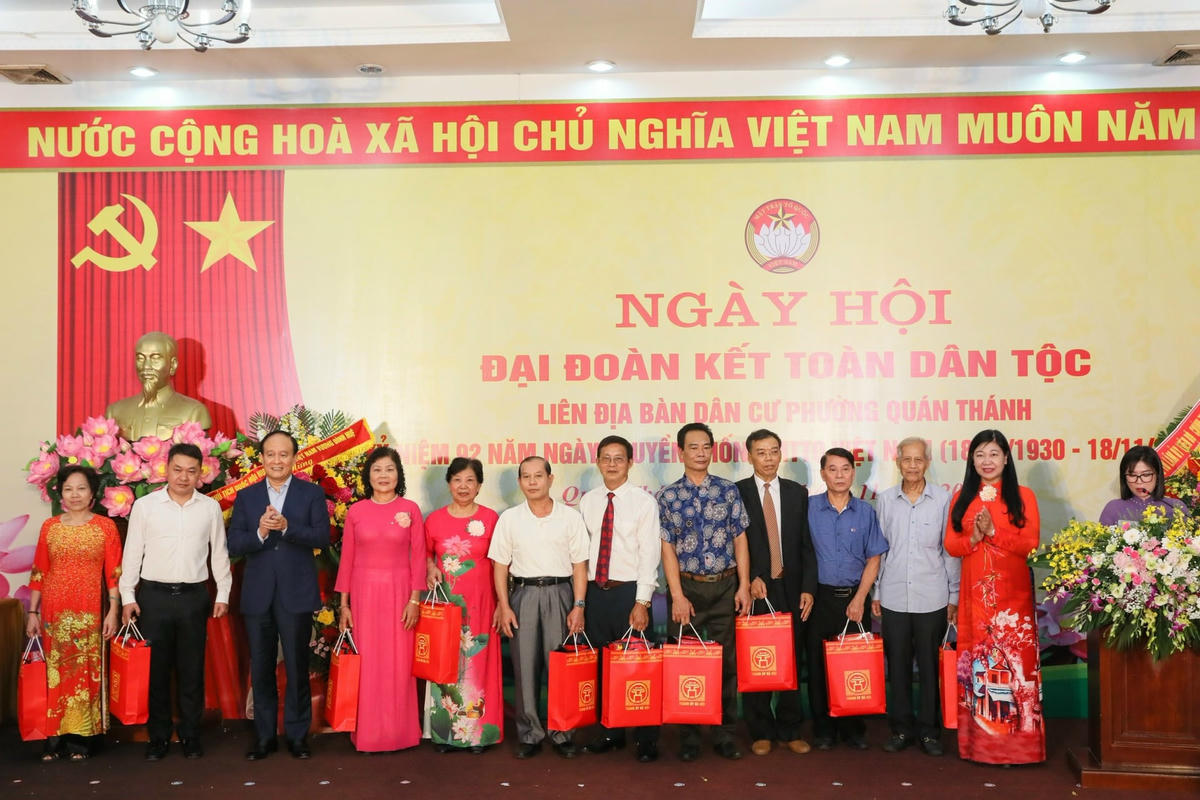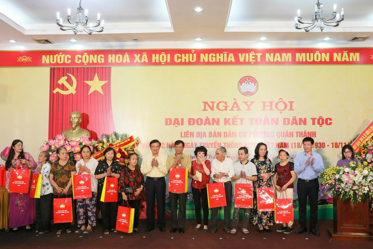 Tại ngày hội, Chủ tịch Quốc hội Vương Đình Huệ và Phó Chủ tịch Thường trực Quốc hội Trần Thanh Mẫn đã trao quà tặng Đảng ủy, UBND, Ủy ban MTTQ phường Quán Thánh. Bộ trưởng Bộ Công an, Đại tướng Tô Lâm; Trưởng Ban Nội chính Trung ương Phan Đình Trạc và Phó Chủ tịch UBTƯ MTTQ Việt Nam Phùng Khánh Tài đã trao quà tặng các gia đình có hoàn cảnh khó khăn trên địa bàn phường Quán Thánh.