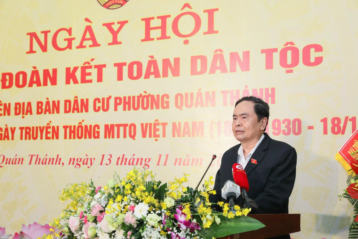 Trò chuyện cùng bà con nhân dân tại ngày hội, Phó Chủ tịch Thường trực Quốc hội Trần Thanh Mẫn khẳng định, đã thành nền nếp hằng năm, đến dịp kỷ niệm Ngày thành lập Mặt trận Dân tộc Thống nhất Việt Nam - Ngày truyền thống MTTQ Việt Nam (18/11), hầu hết khu dân cư cả nước đều tổ chức Ngày hội đại đoàn kết toàn dân tộc để cùng nhau ôn lại truyền thống vẻ vang của MTTQ Việt Nam, đánh giá kết quả thực hiện các cuộc vận động, các phong trào thi đua yêu nước, đề ra nhiệm vụ năm tới, đồng thời biểu dương những điển hình tiên tiến, tiêu biểu tại cộng đồng dân cư.