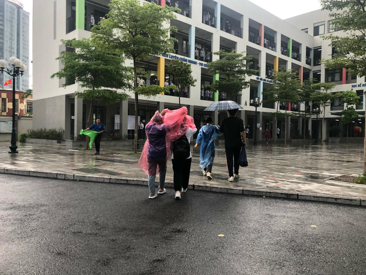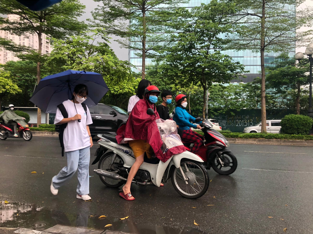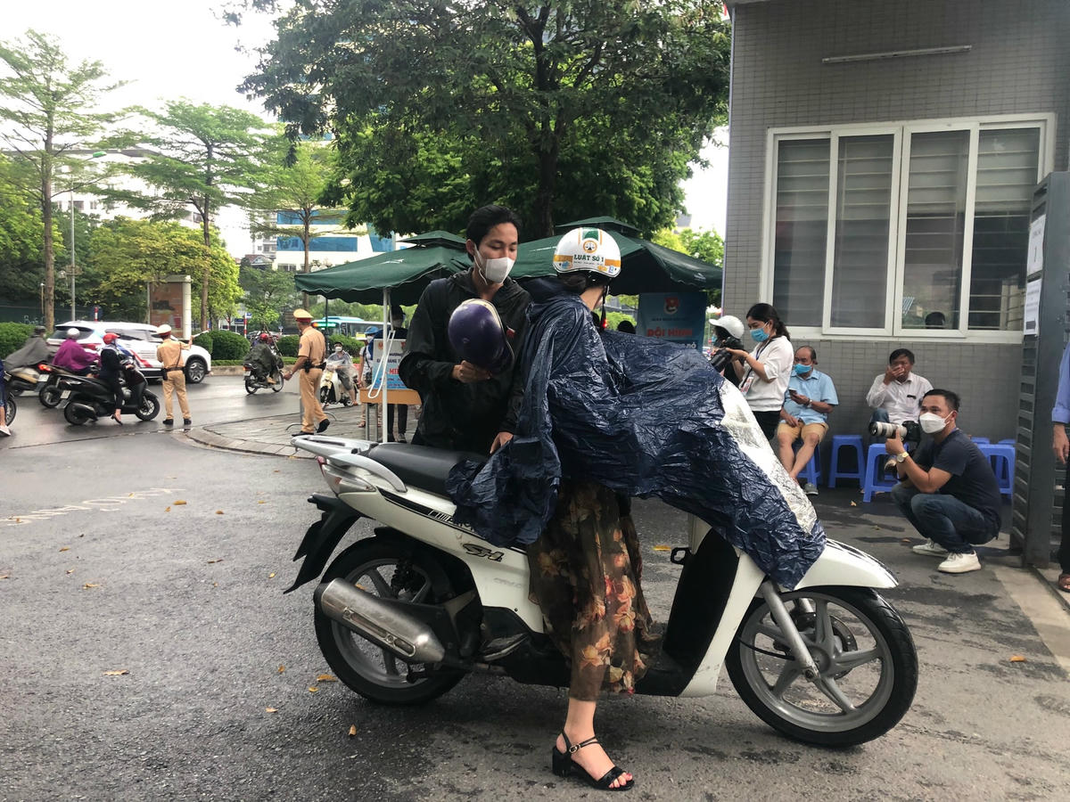 Hà Nội: Sĩ tử đến điểm thi tốt nghiệp THPT 2022 trong cơn mưa nặng hạt