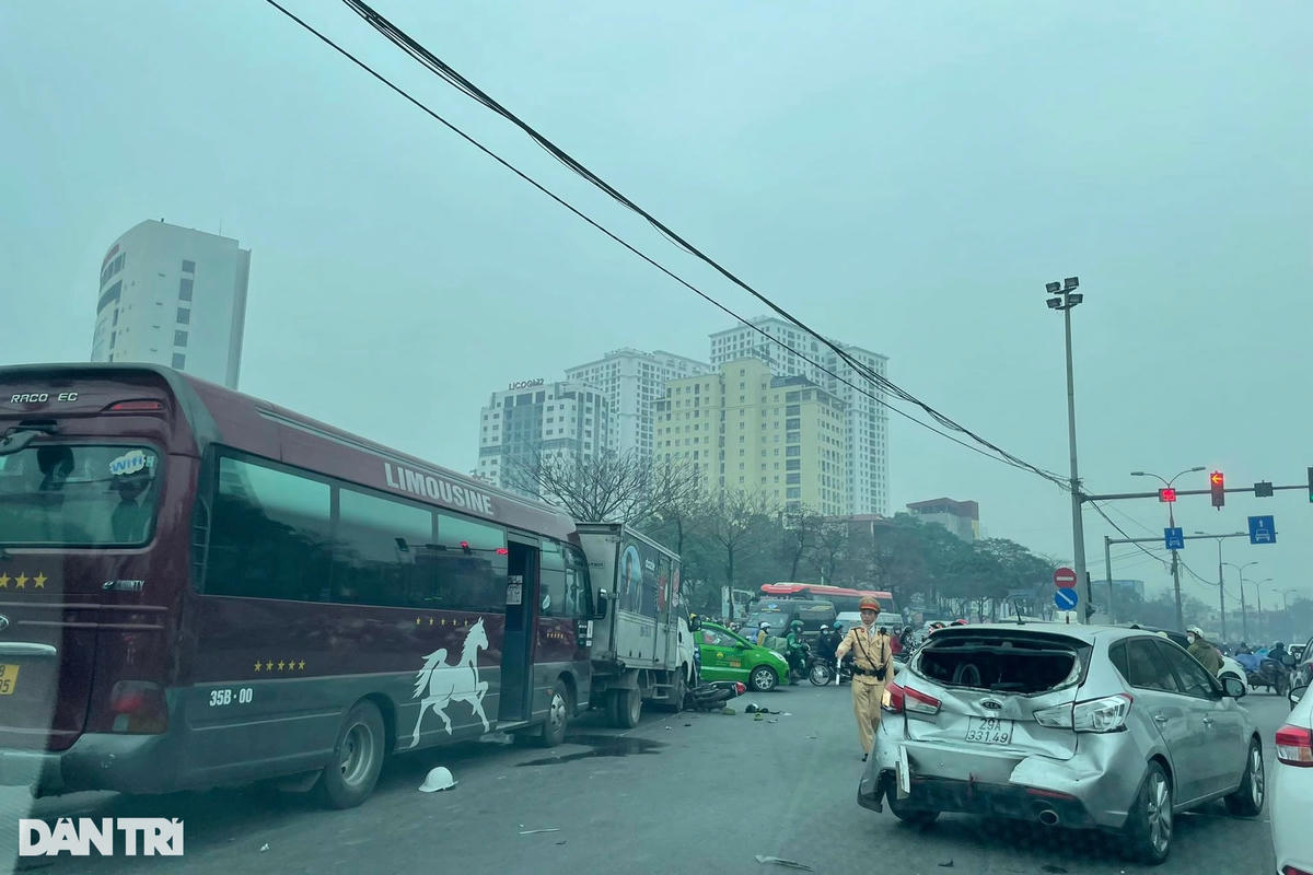 Theo Dân Trí, sáng 24/2, lãnh đạo Đội CSGT số 14 cho biết, vụ tai nạn liên hoàn xảy ra vào khoảng 7h40 cùng ngày, tại ngã ba Giải Phóng - Linh Đàm (Hà Nội), hướng đi vào nội thành.