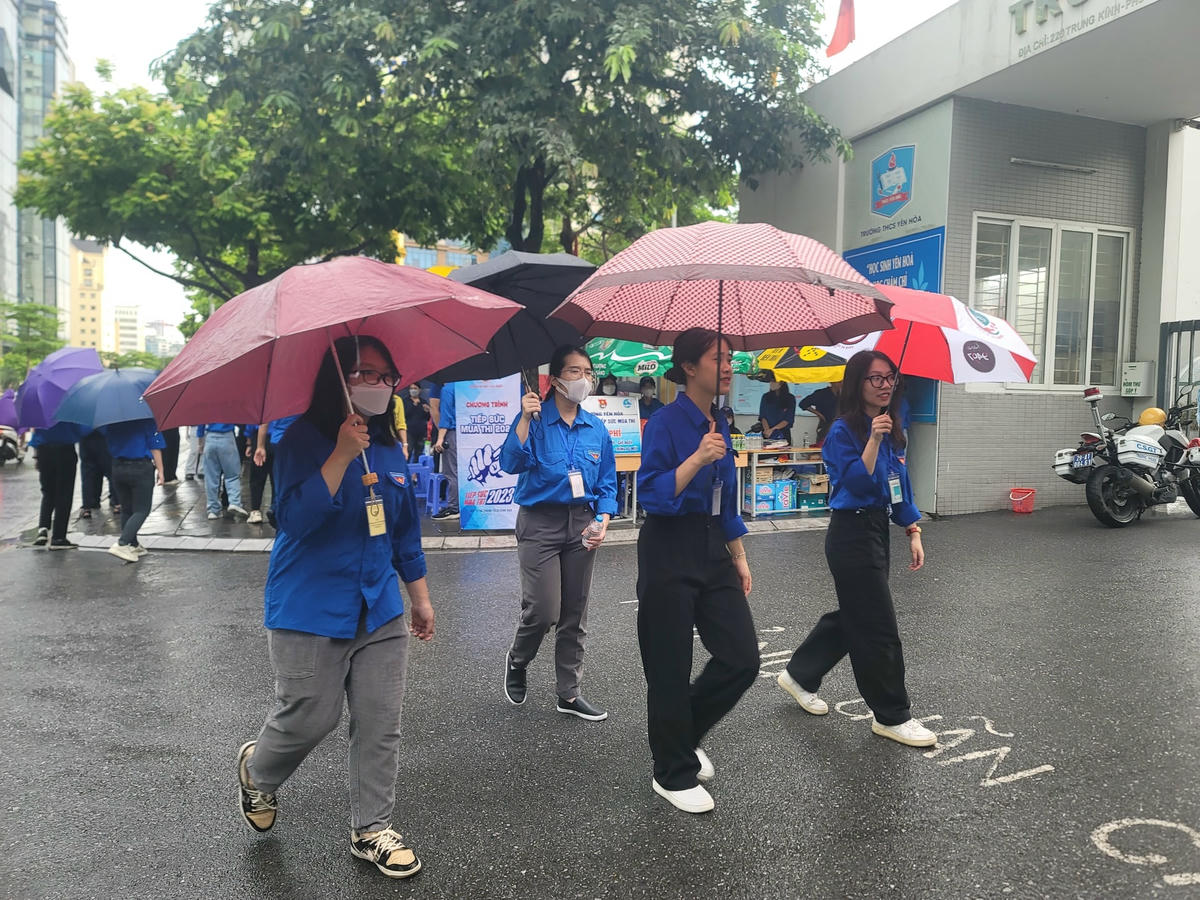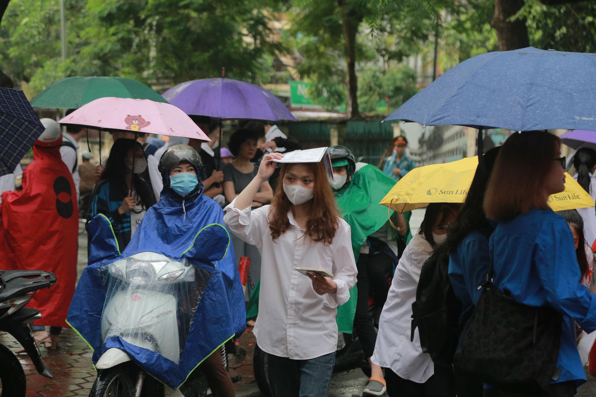 Hà Nội: Thí sinh 'đội mưa' đi thi môn đầu tiên