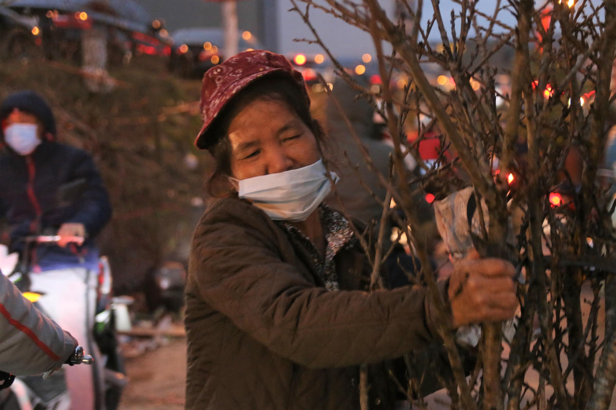 Hà Nội: Tiểu thương chợ hoa ngồi chờ khách mua đào đến tối
