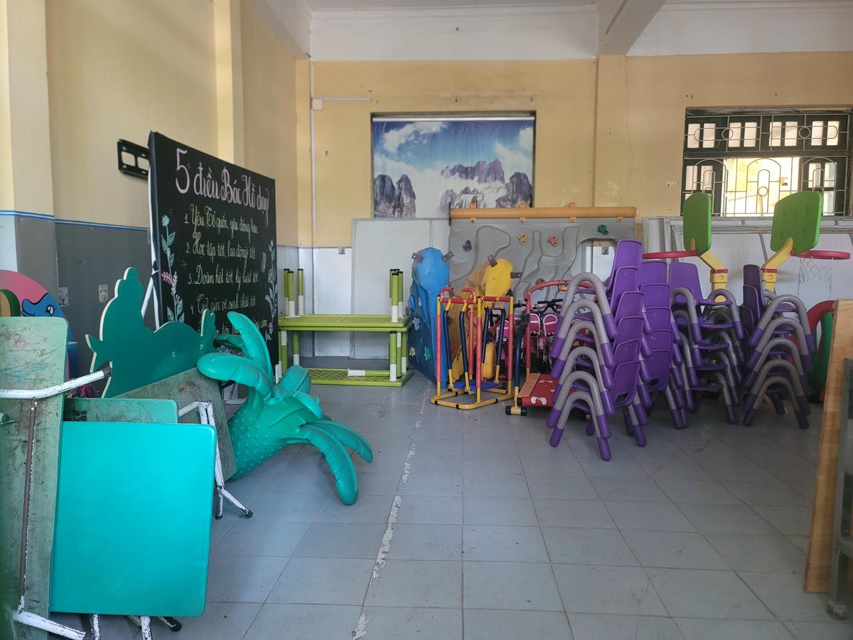 Dưới đây là một số hình ảnh phóng viên Báo Đại Đoàn Kết ghi nhận tại Trường mầm non Hoàng Liệt - cơ sở Tứ Kỳ bị bỏ hoang, gây lãng phí lớn: