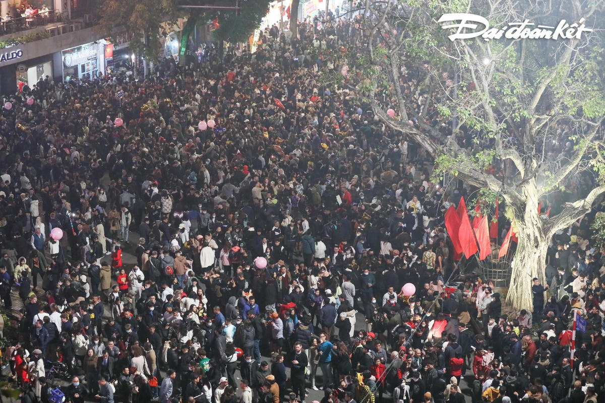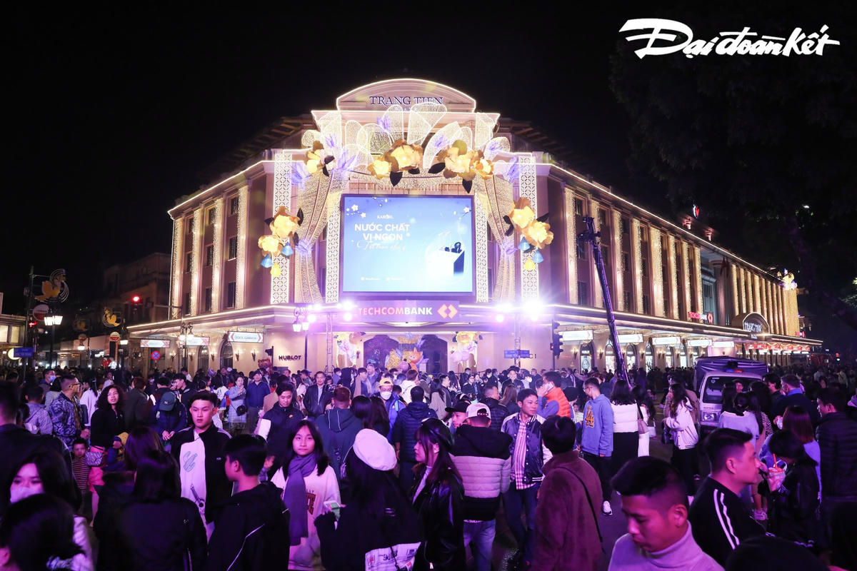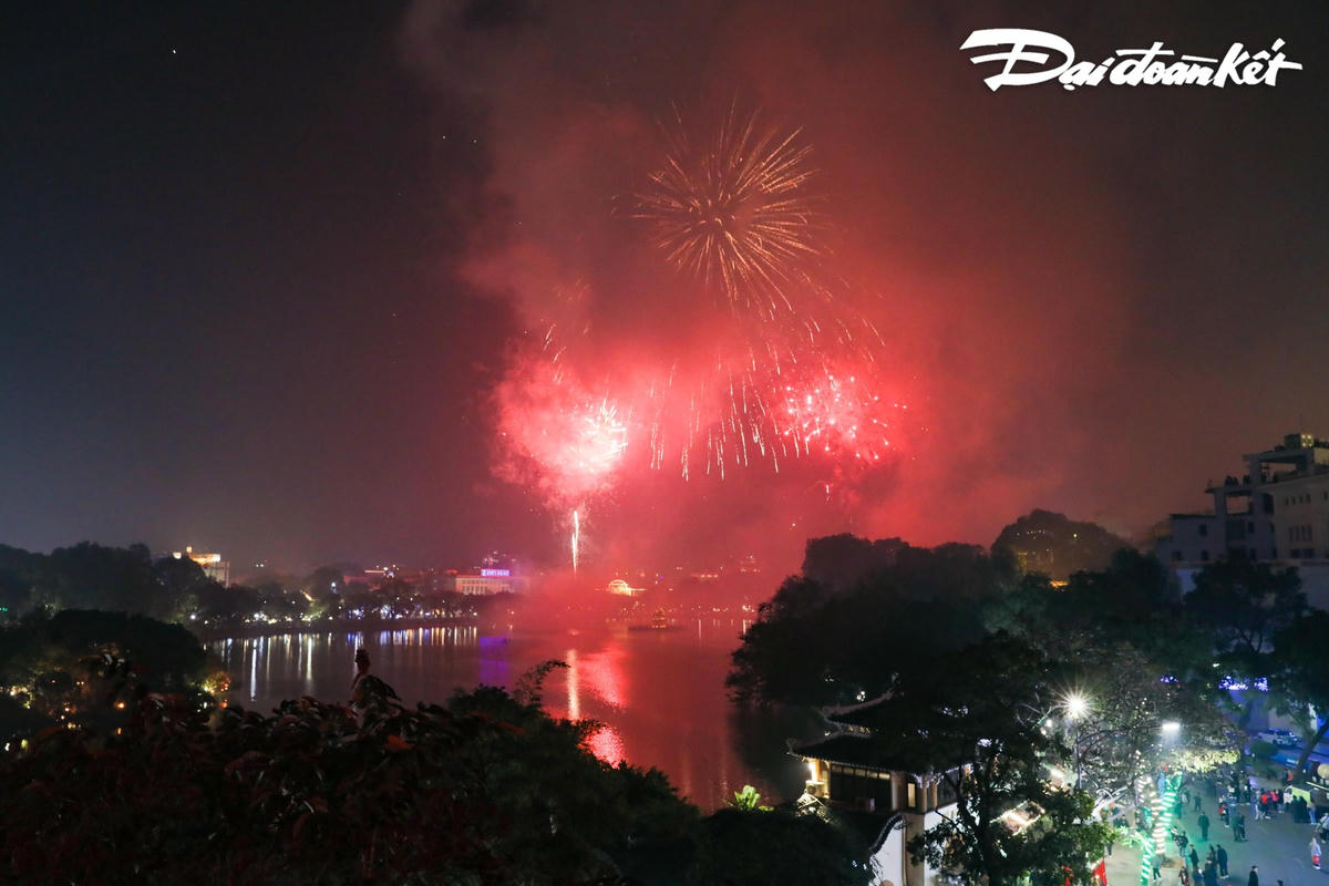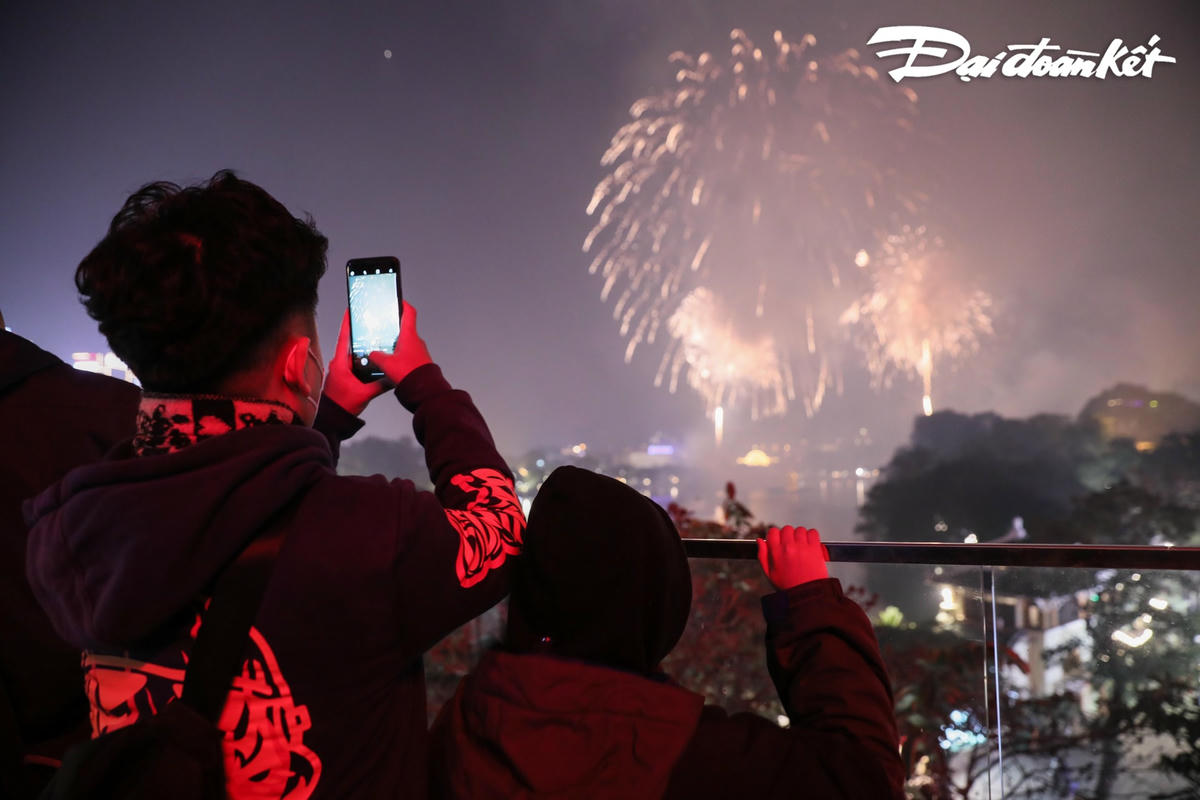 Đùng 0 giờ 00 phút ngày 22/ 1/2023 (tức mùng 1 Tết) pháo hoa rực rỡ trên bầu trời Hà Nội đón chào Năm mới 2023.Theo ghi nhận của PV Đại Đoàn Kết Online, hàng ngàn người dân nô nức đổ về khu vực Hồ Gươm (Hoàn Kiếm, Hà Nội) để hòa chung niềm hân hoan chào đón giao thừa bước sang năm mới 2023 và chiêm ngưỡng những màn bắn pháo hoa đẹp mắt. Nhiều em nhỏ quay lại khoảnh khắc màn pháo hoa rực rỡ trên bầu trời Hà Nội.Năm nay để chào mừng năm mới Xuân Quý Mão, TP .Hà Nội đã quyết định tổ chức bắn pháo hoa ở 31 điểm, trong đó 7 điểm tầm cao và 24 điểm tầm thấp. Được biết, kinh phí từ nguồn xã hội hóa được huy động từ các đơn vị, tổ chức, doanh nghiệp.Trước đó, Tết Nguyên đán các năm 2021 và 2022, do ảnh hưởng của đại dịch Covid-19, Hà Nội chỉ bắn pháo hoa tại một điểm tại đảo Dừa công viên Thống Nhất. Dịp Tết Dương lịch hai năm đó, thành phố cũng không tổ chức bắn pháo hoa cũng như các điểm biểu diễn văn hóa nghệ thuật và countdown (đếm ngược) chào năm mới. Thay vào đó, thành phố tổ chức một số hoạt động trực tuyến.Du khách nước ngoài cũng hòa chung không khí đón chào Năm mới 2023.Khu vực Tràng Tiền chật cứng người xem pháo hoa.