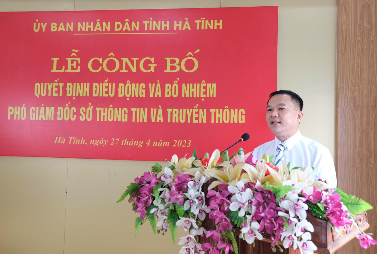 Giám đốc Trung tâm Công báo - Tin học, Văn phòng UBND tỉnh Hà Tĩnh đến nhận công tác tại Sở Thông tin và Truyền thông bổ nhiệm giữ chức vụ Phó Giám đốc.