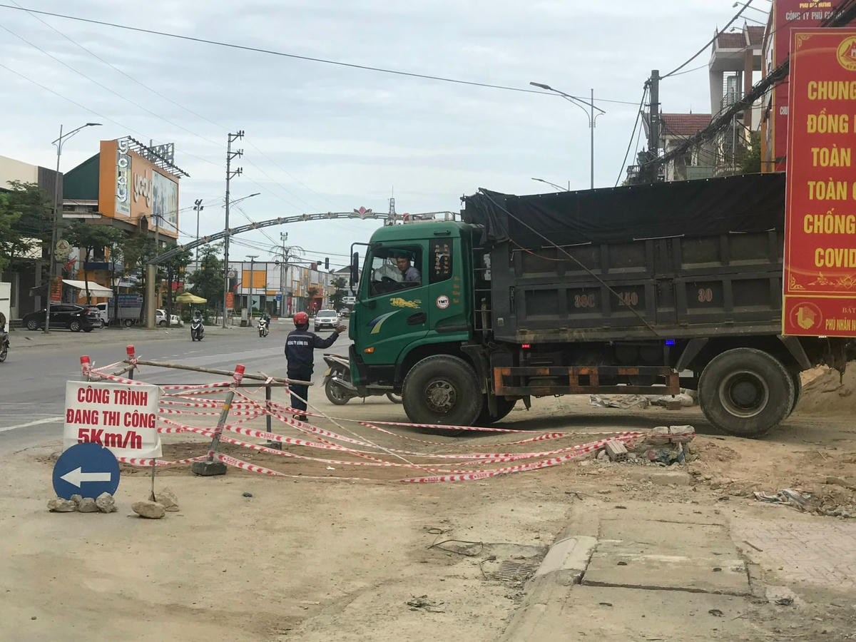 Lập tức, đoàn liên ngành gồm Chi cục Quản lý đường bộ II.3, Phòng quản lý đô thị thị xã Kỳ Anh, phường Hưng Trí, TDP 3 kiểm tra tại hiện trường, làm việc với chủ đầu tư, đơn vị thi công.