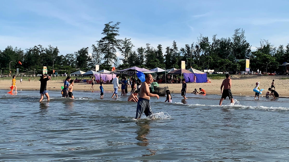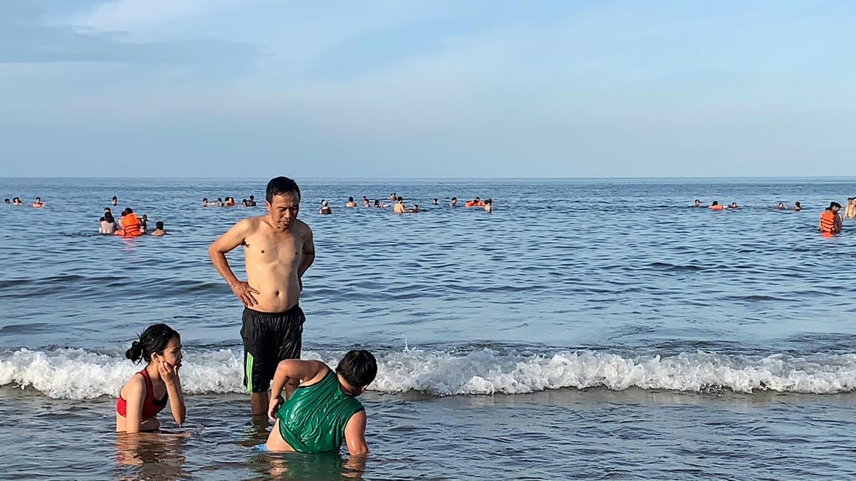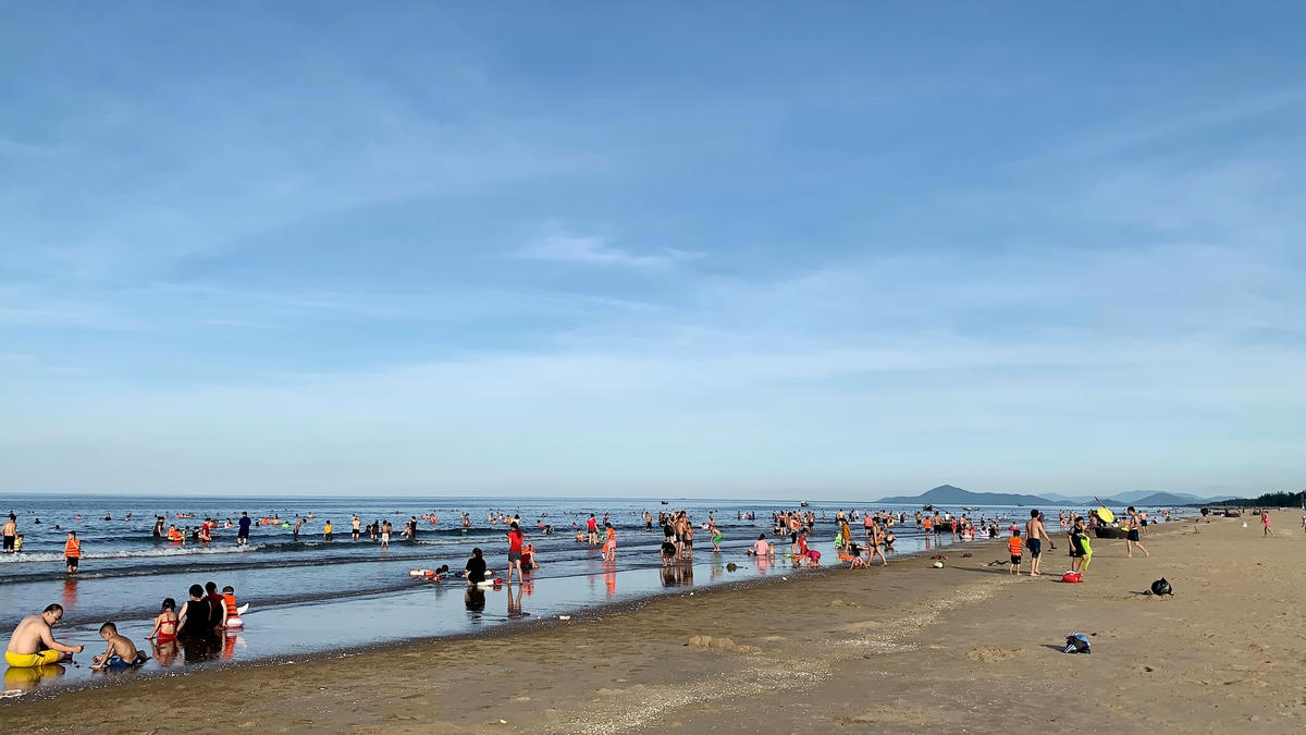 Ngày 5/6, tại bãi biển Thạch Hải, có rất nhiều du khách trong và ngoài tỉnh đến tham quan và tắm biển.