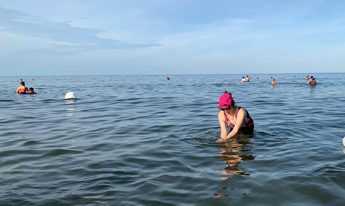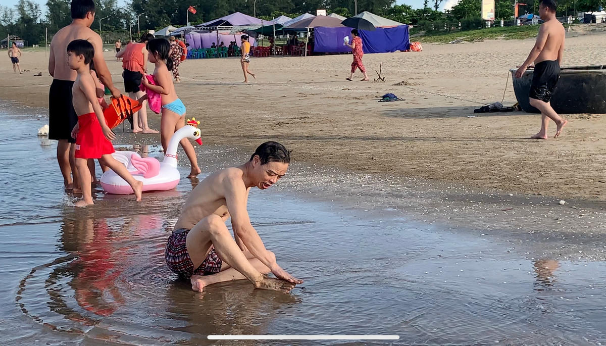 Tuy nhiên, sau một lúc xuống tắm, nhiều người có cảm giác ngứa ngáy, khó chịu và phải chạy lên bờ ngồi gãi.