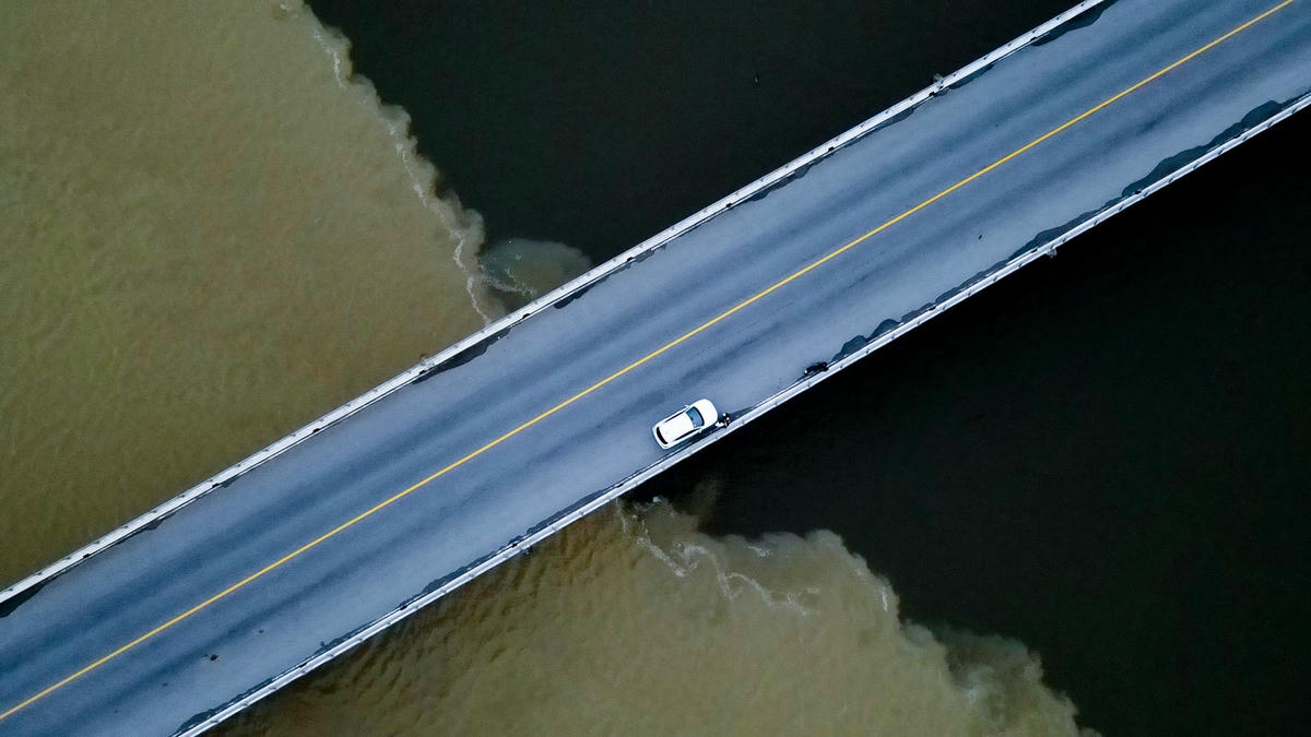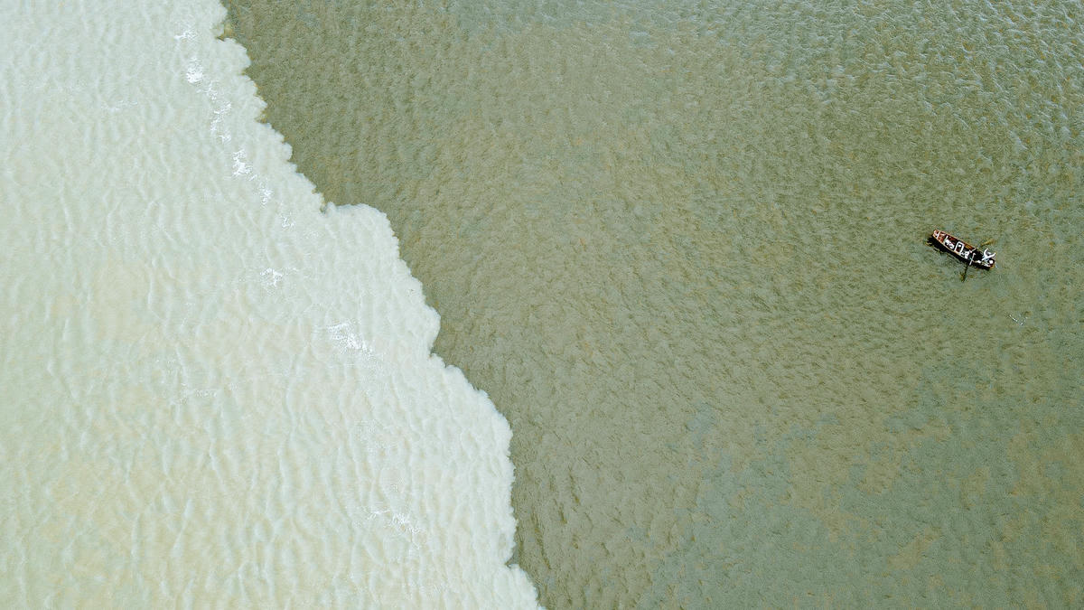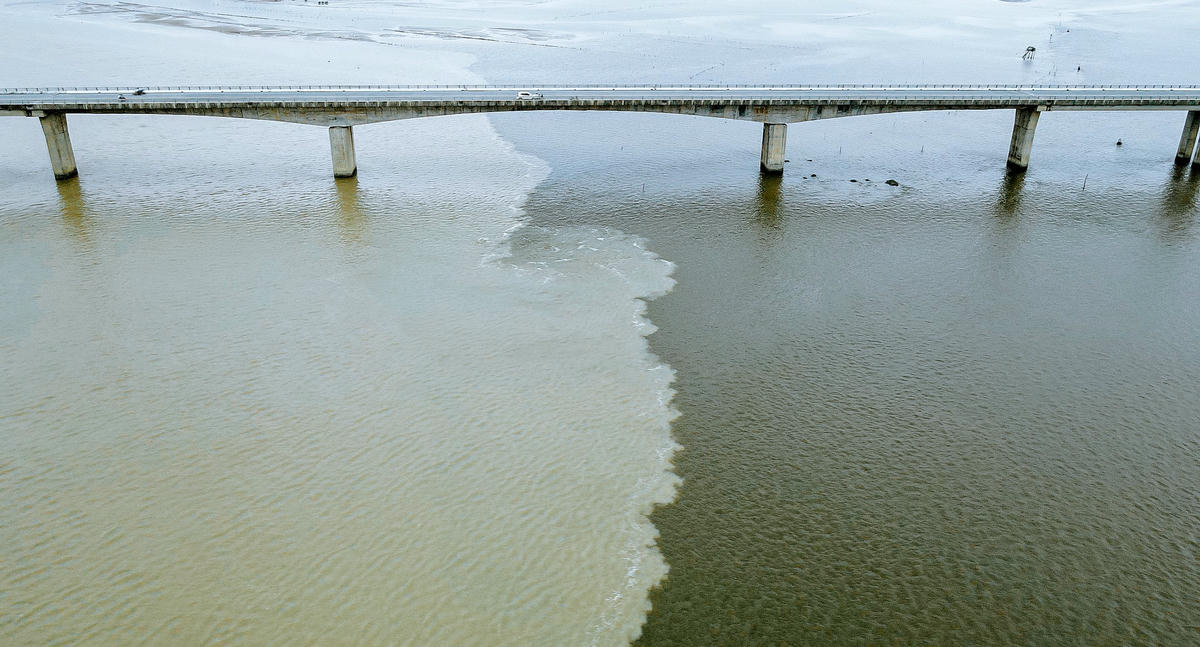Sau những ngày mưa lớn kéo dài, người dân bất ngờ trước hiện tượng kỳ lạ khi nhìn thấy nước biển dưới chân cầu Cửa Nhượng (huyện Cẩm Xuyên, tỉnh Hà Tĩnh) bỗng chia làm hai màu, vàng đục và xám.