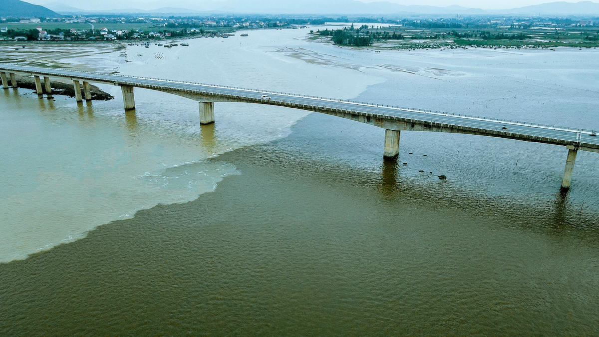 Hà Tĩnh: Mặt biển dưới chân cầu Cửa Nhượng chia đôi hai màu nước