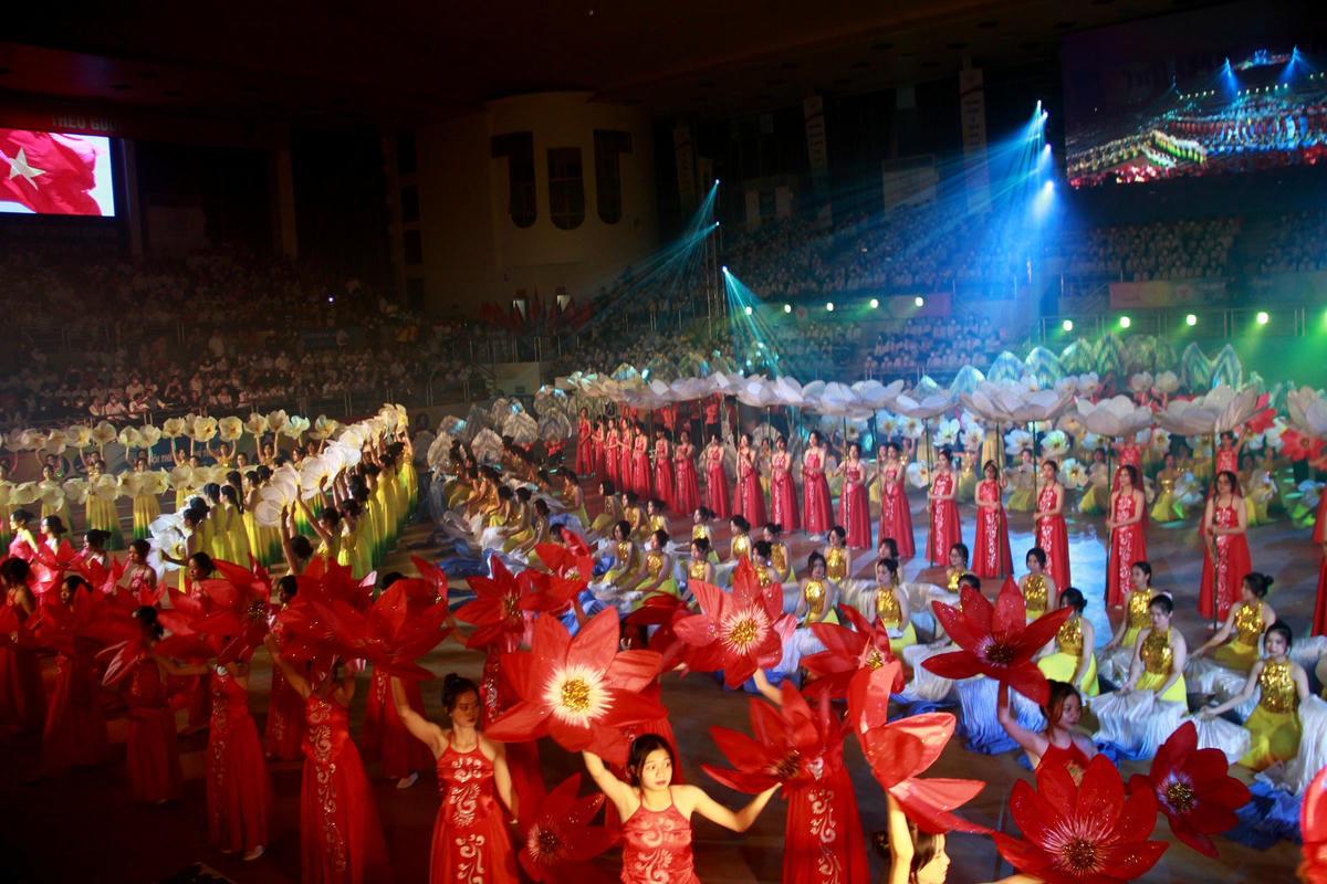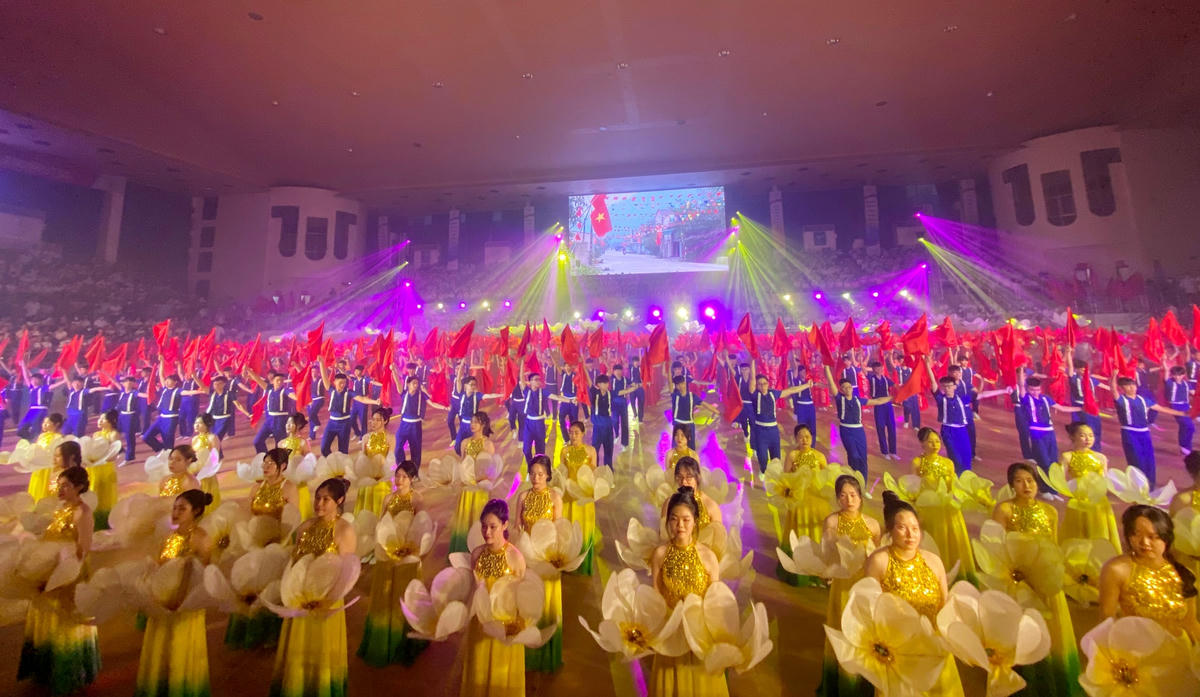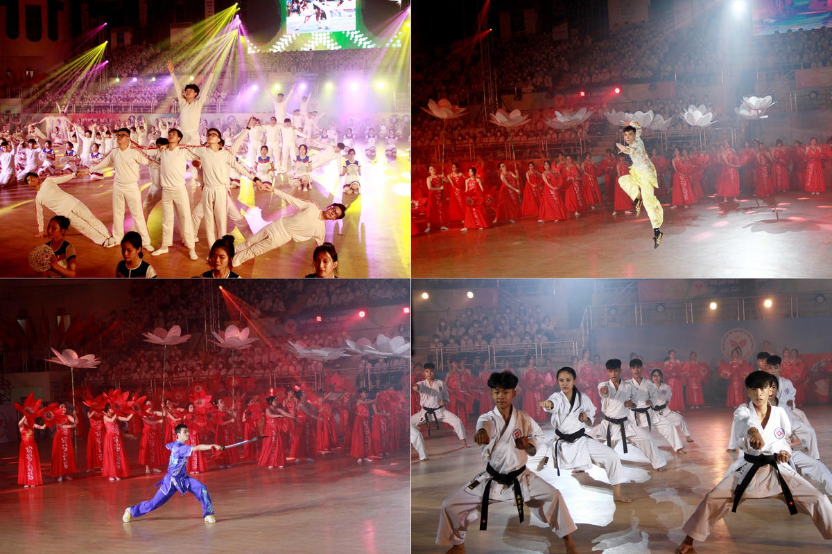 Tại lễ khai mạc, đã diễn ra chương trình nghệ thuật đồng diễn chào mừng đại hội với chủ đề “Hà Tĩnh rạng ngời truyền thống - Bước tới tương lai” do học sinh các trường THCS, THPT trên địa bàn TP Hà Tĩnh tham gia thể hiện.