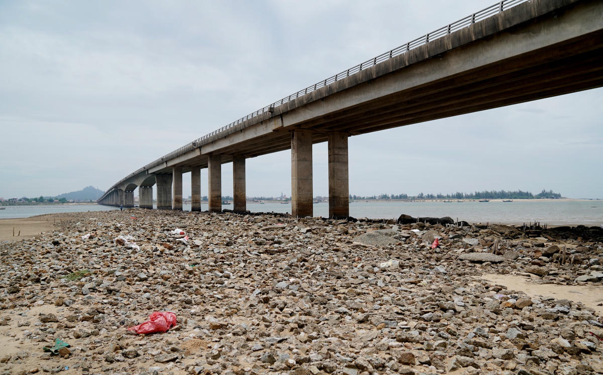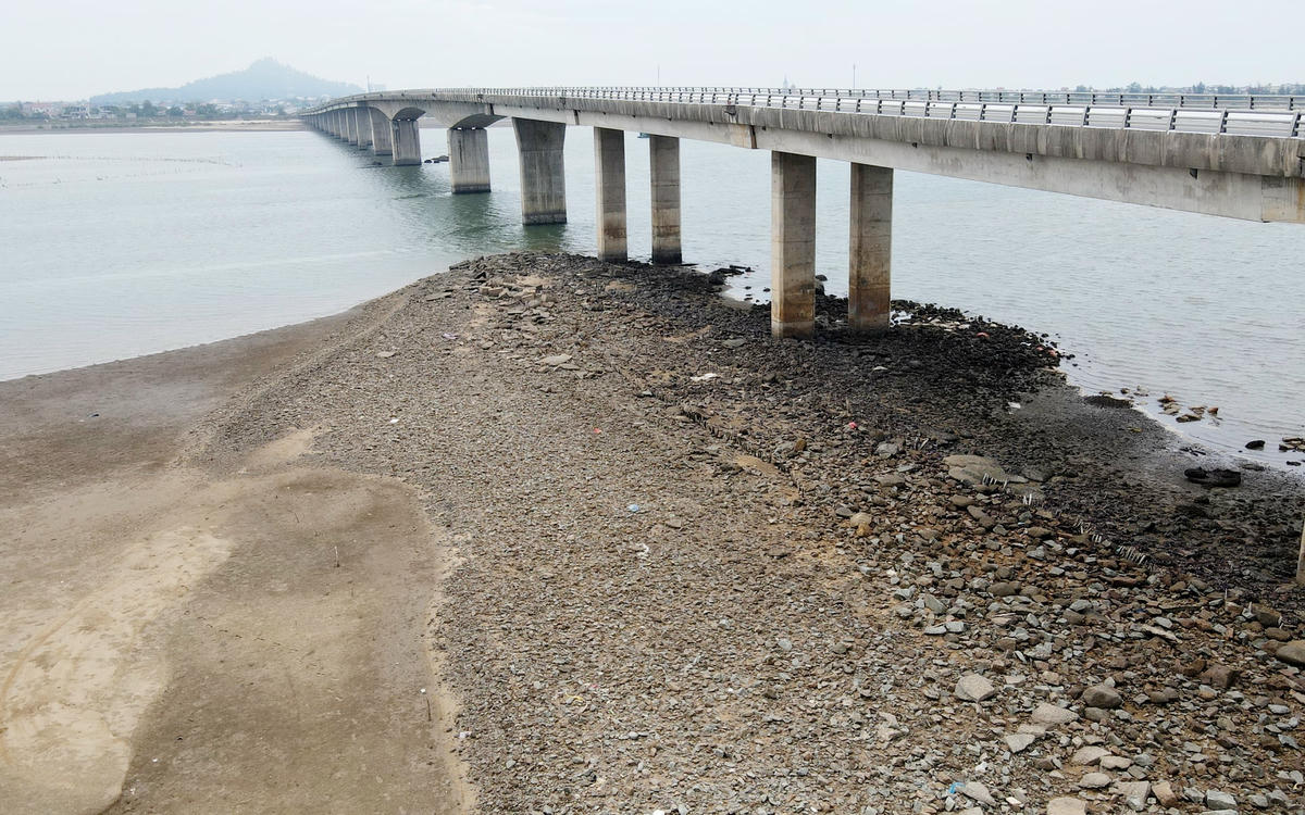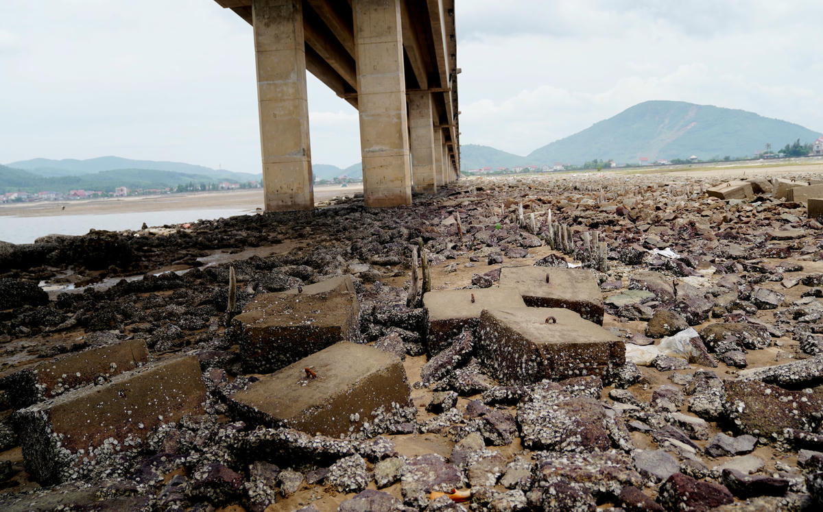 Sau khi hoàn thành xây dựng, các nhà thầu đã “bỏ quên” hàng trăm tấn đá, khối xi măng sau thi công dưới chân cầu Cửa Nhượng (huyện Cẩm Xuyên, tỉnh Hà Tĩnh) gây cản trở dòng chảy, ảnh hưởng đến tàu thuyền vào neo đậu.