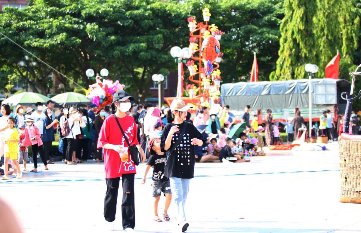 Chị Diệp Bình (trú tại phường Thạch Linh, thành phố Hà Tĩnh) đưa theo 2 con nhỏ ra công viên xem bay diễn khinh khí cầu chia sẻ: “Sự kiện diễn ra ngày cuối tuần, nên tôi bớt ít thời gian đem cháu đi xem bay khinh khí cầu. Nhưng do điều kiện thời tiết nắng nóng, gió nam thổi mạnh nên chương trình có trục trặc kỹ thuật".