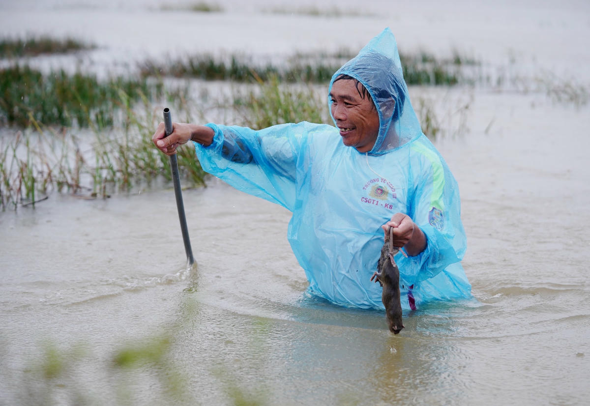 Hà Tĩnh: Nước lũ ngập đồng, người dân kéo nhau đi đập chuột