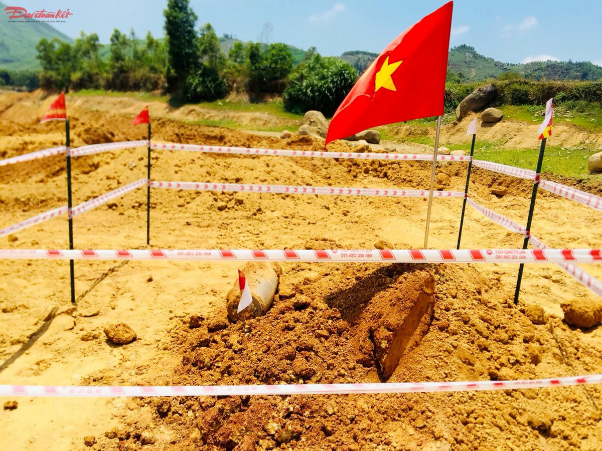 Nhận được tin báo, chính quyền địa phương cùng lực lượng công an xã nhanh chóng có mặt để xác minh. Theo quan sát tại hiện trường, quả bom có chiều dài 1,6 m, đường kính 25 cm, ước tính nặng khoảng 200 kg.