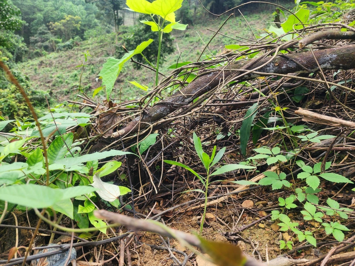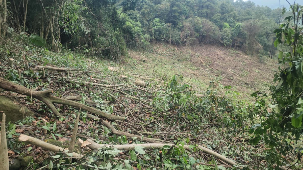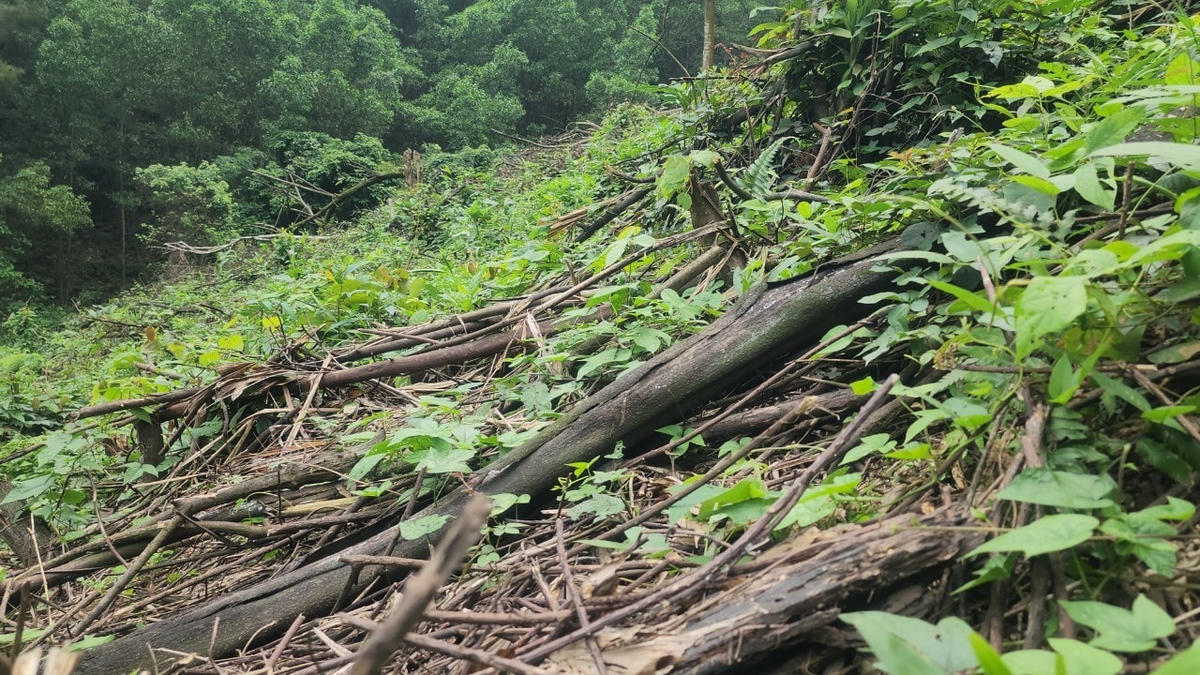 Cây thân gỗ tái sinh tự nhiên, giây leo, cây bụi, thực bì đã bị chặt hạ, chưa đốt, phần thân cây và gốc cây còn nguyên tại hiện trường.