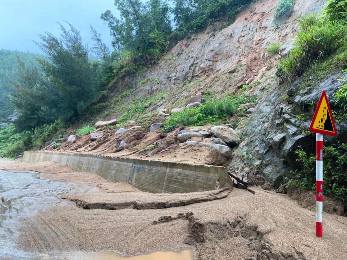 Mưa lớn nhiều ngày khiến đường quốc phòng ở xã Cẩm Lĩnh (Cẩm Xuyên, Hà Tĩnh) xuất hiện 10 điểm sạt lở với tổng chiều dài khoảng 200m với khối lượng đất đá khoảng 150 m3.
