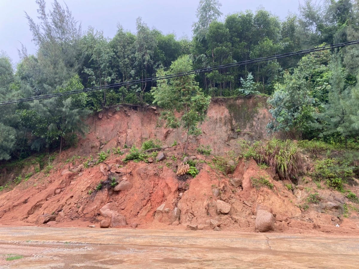Mưa lớn diễn ra từ ngày 21/9 đến nay đã gây sạt lở dọc tuyến đường tuần tra ven biển xã Cẩm Lĩnh (hay còn gọi là tuyến đường quốc phòng đi xã Cẩm Lĩnh (Cẩm Xuyên) đến Kỳ Xuân (huyện Kỳ Anh).
