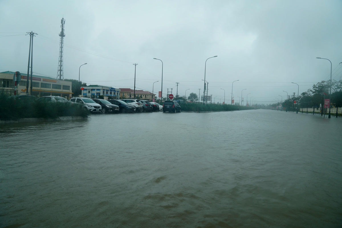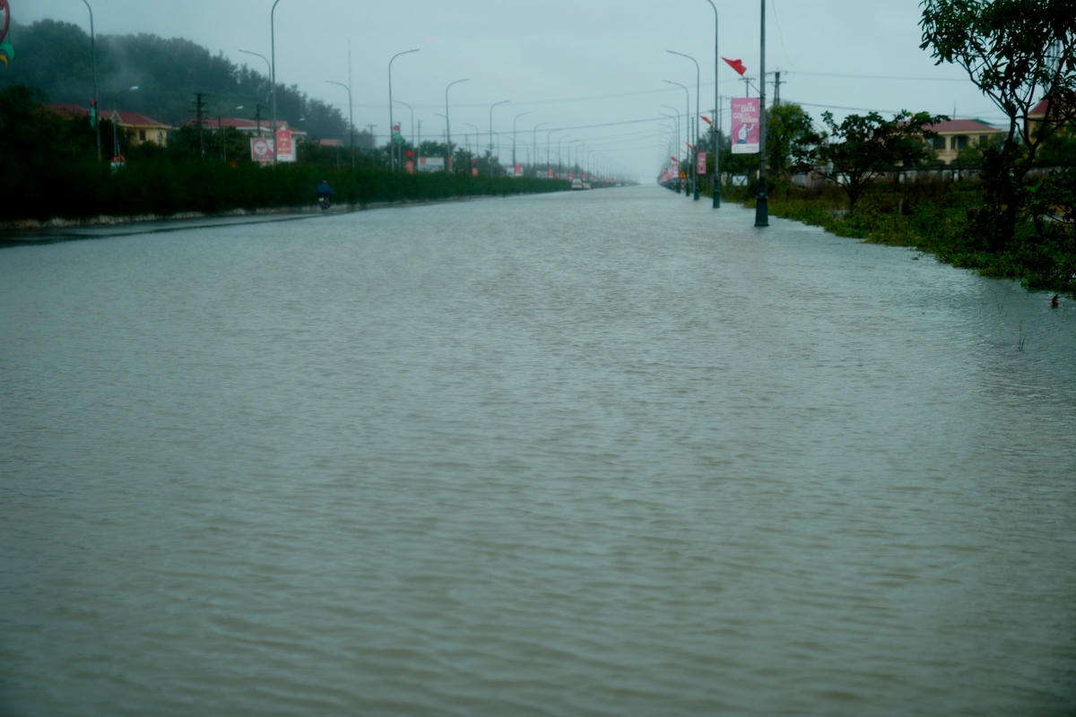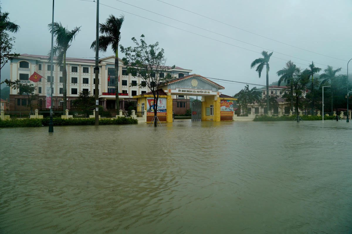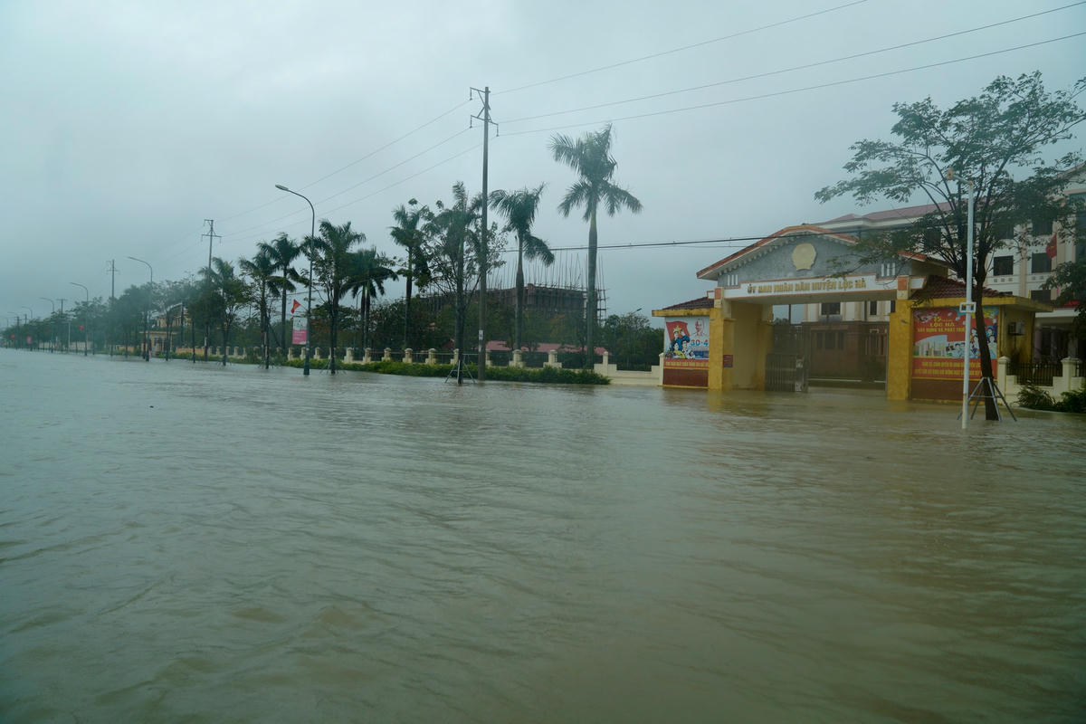 Ngày 23/11, theo ghi nhận của phóng viên báo Đại Đoàn Kết, nhiều tuyến đường như đại lộ Bằng Sơn, đại lộ Mai Hắc Đế, đường Trần Đức Mẫu, Nguyễn Văn Giai… (thị trấn Lộc Hà, huyện Lộc Hà, tỉnh Hà Tĩnh) bị ngập sâu. Do mưa lớn kéo dài khiến khu vực phía trước của Bưu điện huyện Lộc Hà, Trung tâm Hành chính công huyện này chìm trong biển nước.Phương tiện giao thông đi lại gặp nhiều khó khăn.Trước cổng Huyện uỷ Lộc Hà cũng ngập sâu trong nước. Ghi nhận của phóng viên lúc 9h sáng, tại một số tuyến đường thuộc thị trấn Lộc Hà bị ngập sâu khoảng 40cm, hầu hết các xe không thể lưu thông qua tuyến đường này, ngoài một số xe gầm cao.Tuyến đường phía trước UBND huyện Lộc Hà ngập sâu khoảng 30 cm...Để lưu thông qua khu vực này chỉ có thể xe gầm cao hoặc xe tải.Theo người dân địa phương nguyên nhân khiến những tuyến đường này ngập sâu bởi mưa lớn, hệ thống thoát nước không kịp.Nhiều phương tiện như ô tô, xe máy khi lưu thông bị ngập sâu khiến xe bị chết máy.Để đảm bảo an toàn, các tài xế ô tô buộc phải chọn chỗ cao ráo để đỗ tạm thời.