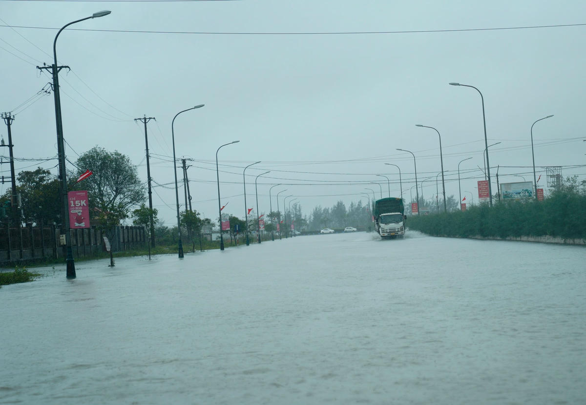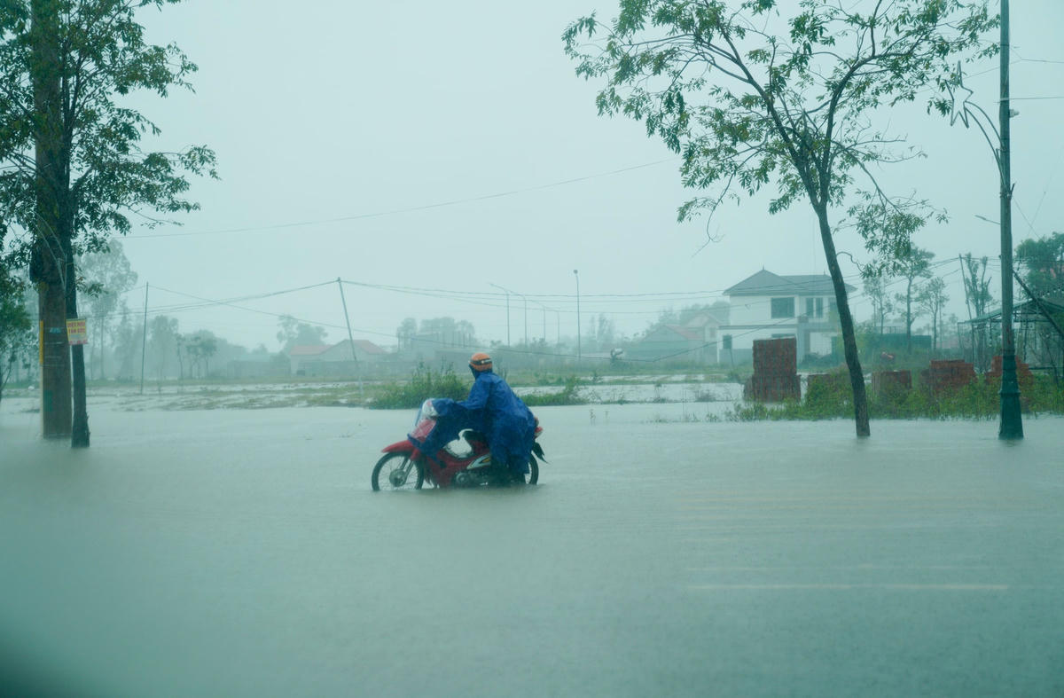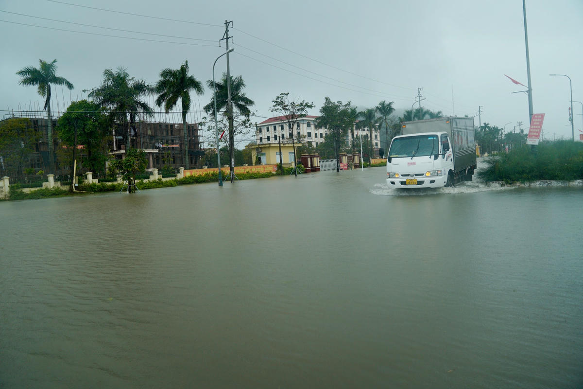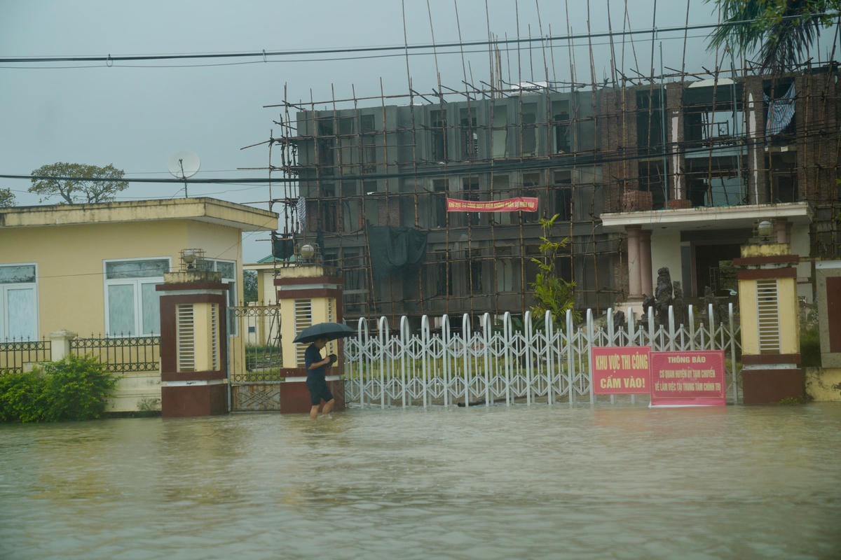 Ngày 23/11, theo ghi nhận của phóng viên báo Đại Đoàn Kết, nhiều tuyến đường như đại lộ Bằng Sơn, đại lộ Mai Hắc Đế, đường Trần Đức Mẫu, Nguyễn Văn Giai… (thị trấn Lộc Hà, huyện Lộc Hà, tỉnh Hà Tĩnh) bị ngập sâu. Do mưa lớn kéo dài khiến khu vực phía trước của Bưu điện huyện Lộc Hà, Trung tâm Hành chính công huyện này chìm trong biển nước.Phương tiện giao thông đi lại gặp nhiều khó khăn.Trước cổng Huyện uỷ Lộc Hà cũng ngập sâu trong nước. Ghi nhận của phóng viên lúc 9h sáng, tại một số tuyến đường thuộc thị trấn Lộc Hà bị ngập sâu khoảng 40cm, hầu hết các xe không thể lưu thông qua tuyến đường này, ngoài một số xe gầm cao.Tuyến đường phía trước UBND huyện Lộc Hà ngập sâu khoảng 30 cm...Để lưu thông qua khu vực này chỉ có thể xe gầm cao hoặc xe tải.Theo người dân địa phương nguyên nhân khiến những tuyến đường này ngập sâu bởi mưa lớn, hệ thống thoát nước không kịp.Nhiều phương tiện như ô tô, xe máy khi lưu thông bị ngập sâu khiến xe bị chết máy.Để đảm bảo an toàn, các tài xế ô tô buộc phải chọn chỗ cao ráo để đỗ tạm thời.