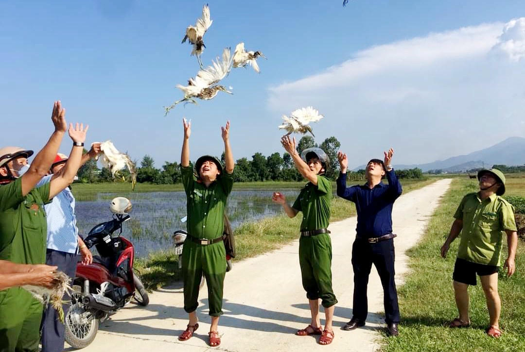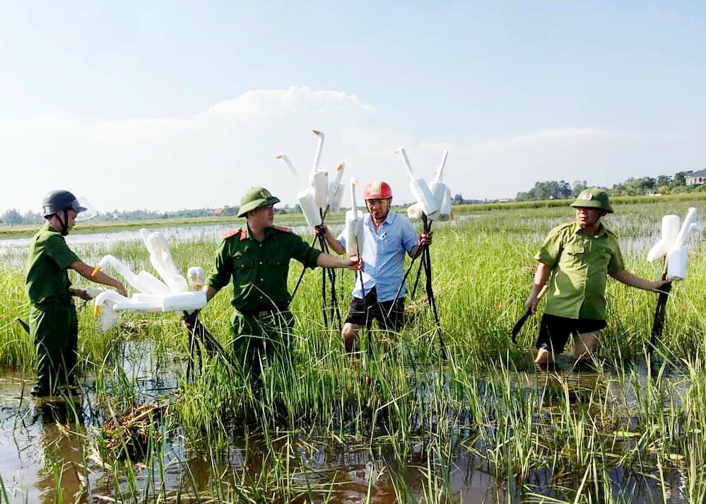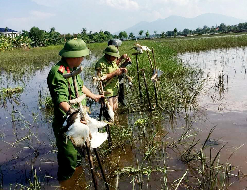 Hạt Kiểm lâm huyện Nghi Xuân cùng lực lượng công an các xã đã triển khai các biện pháp ngăn chặn, xử lý tình trạng đánh bắt, tận diệt chim trời tự nhiên.Lực lượng chức năng đang cứu giúp những con chim đi tránh bão bị vướng vào dụng cụ bẫy chim. Những con cò giả được làm bằng xốp khiến cho đàn chim di trú tưởng là đồng loại nên sà xuống và bị mắc bẫyLực lượng chức năng tiêu huỷ ngay tại chỗ những dụng cụ mồi con cò giả được làm bằng xốp.Cũng trong tháng 9, các lực lượng chức năng đã ra quân tịch thu 21.500 que bẫy bằng keo; 1.180m lưới bẫy chim; 2 bộ máy phát tín hiệu dụ chim; tháo dỡ 37 lán ẩn nấp. Tại các địa phương trên địa bàn huyện Nghi Xuân, lực lượng chức năng cũng tiến hành thả 137 cá thể chim trời về với tự nhiên.